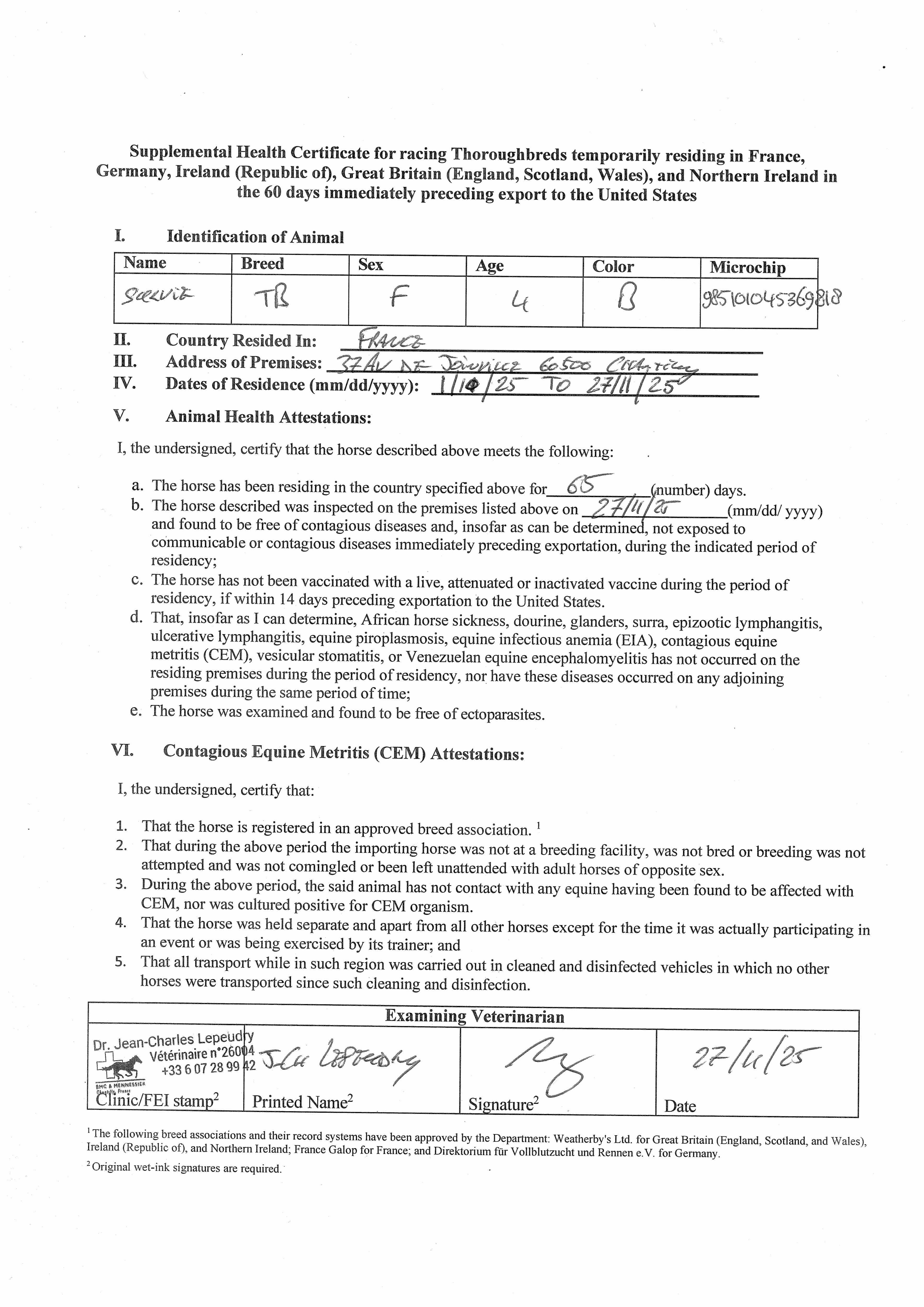 Health Certificate