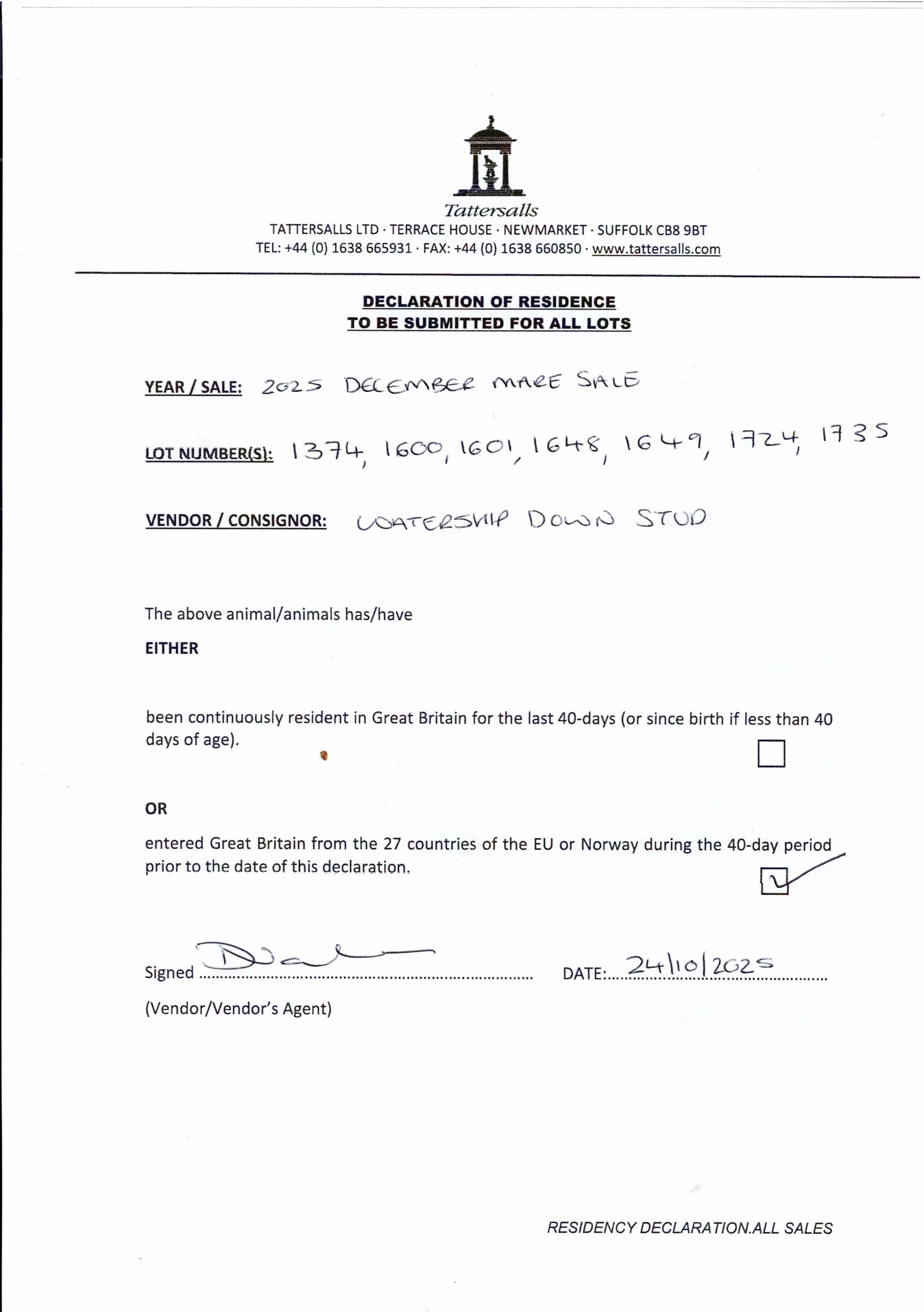 Consignor: Watership Down Stud