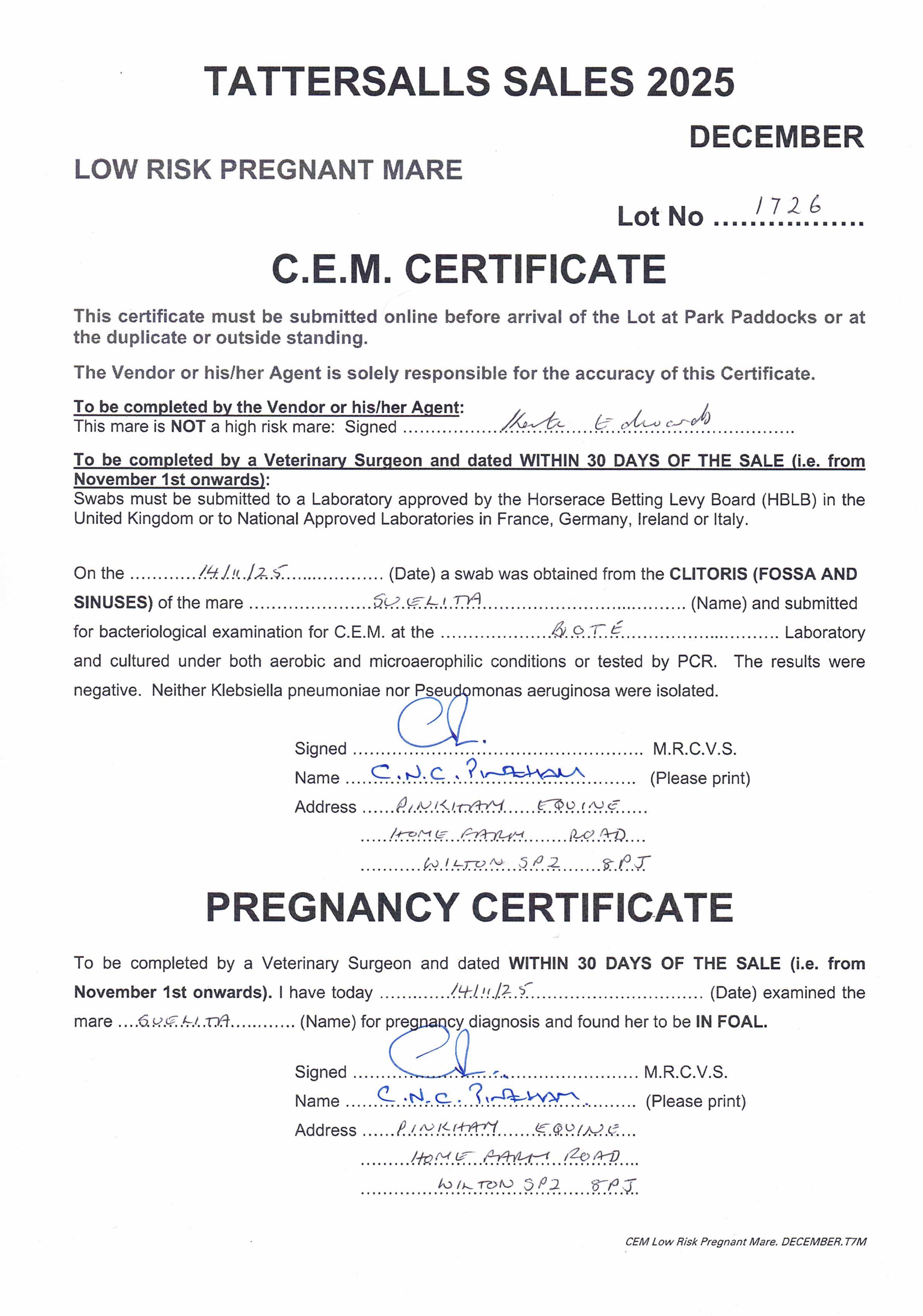 December Mare Sale 2014 lot 1979 Ayr Missile (GB) (M. by Cadeaux Genereux), Catridge Farm Stud=>Emerald Bloodstock 30,000 gns