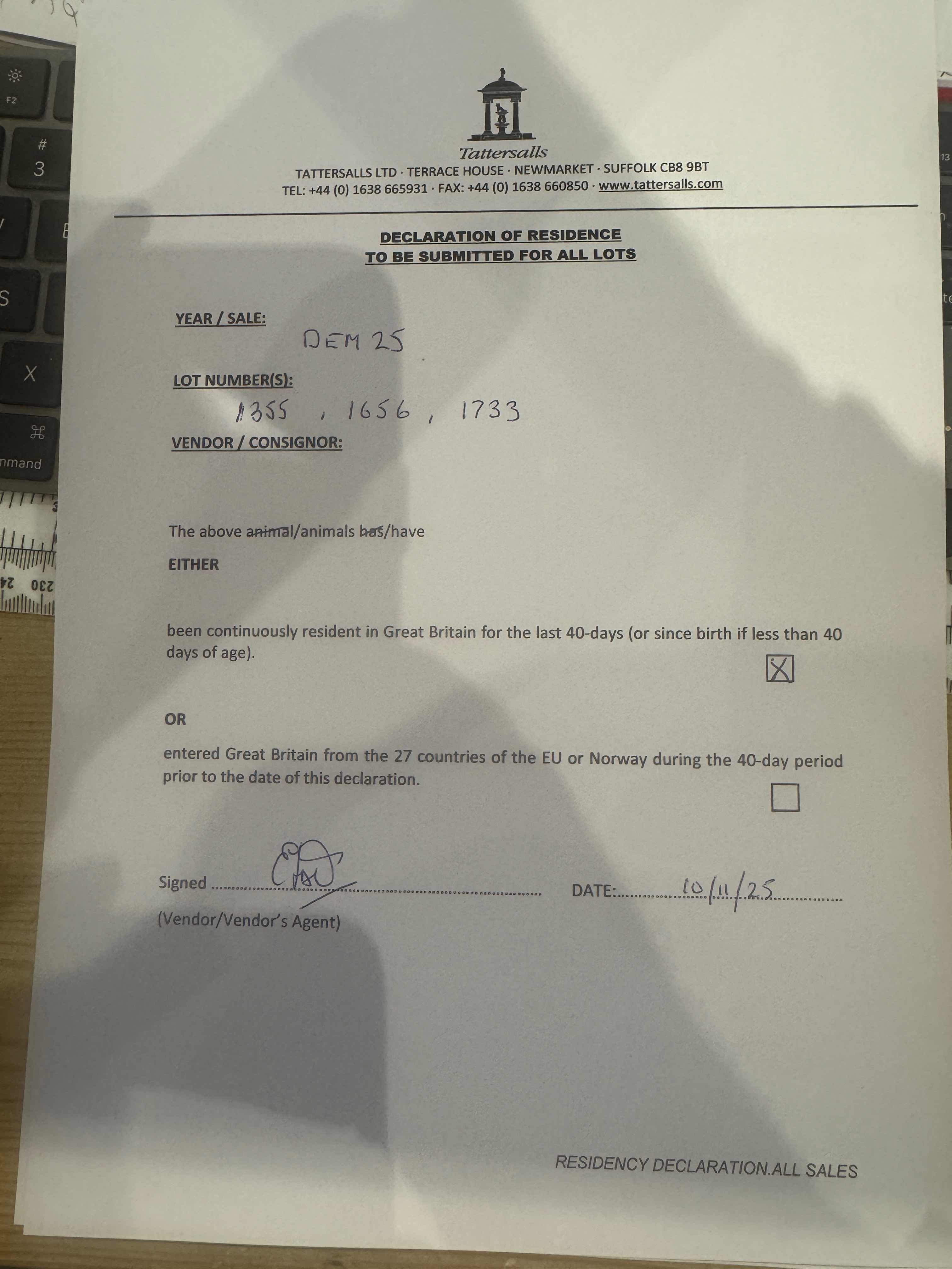 Consignor: Voute Sales Ltd. (Agent)