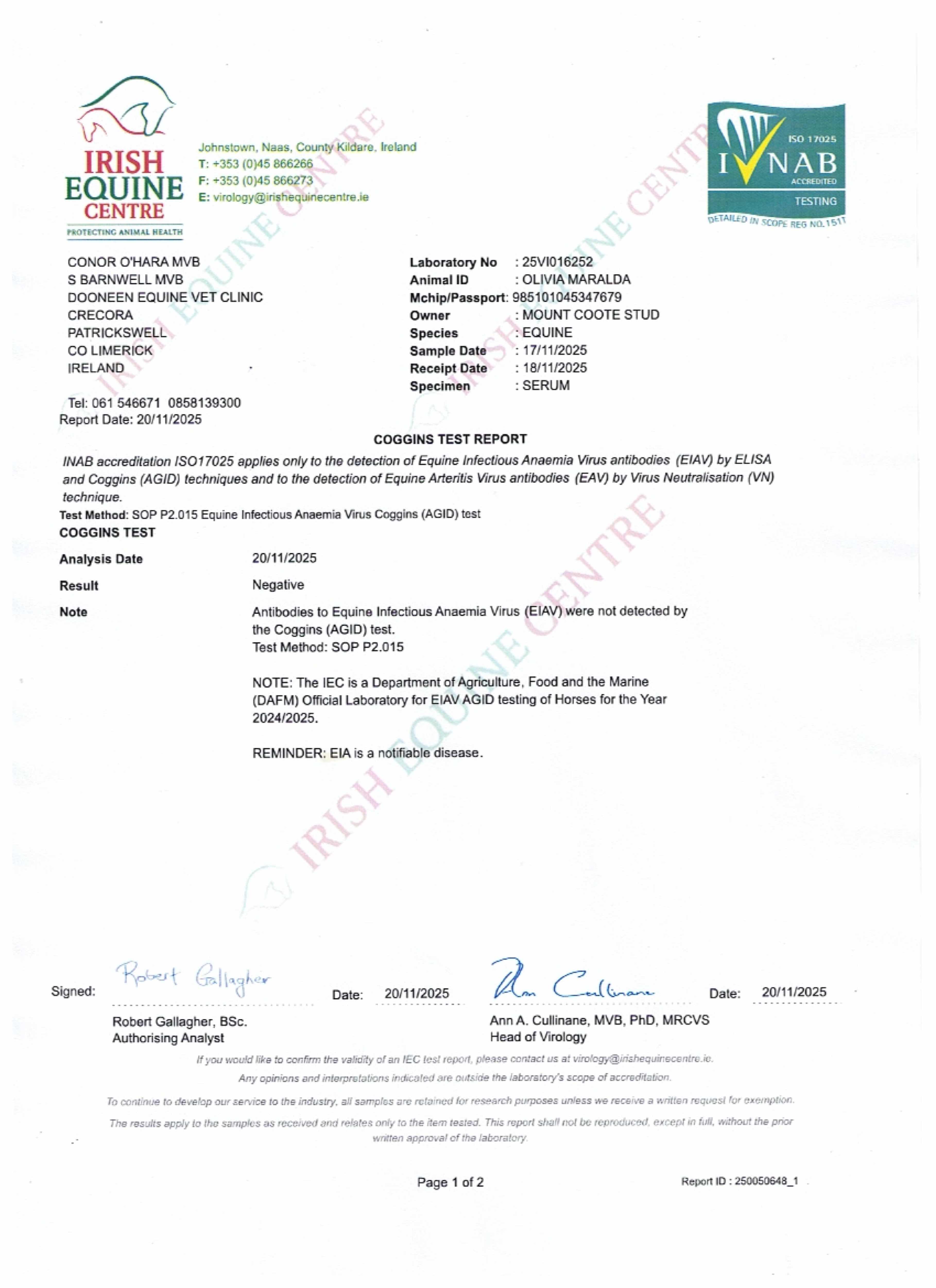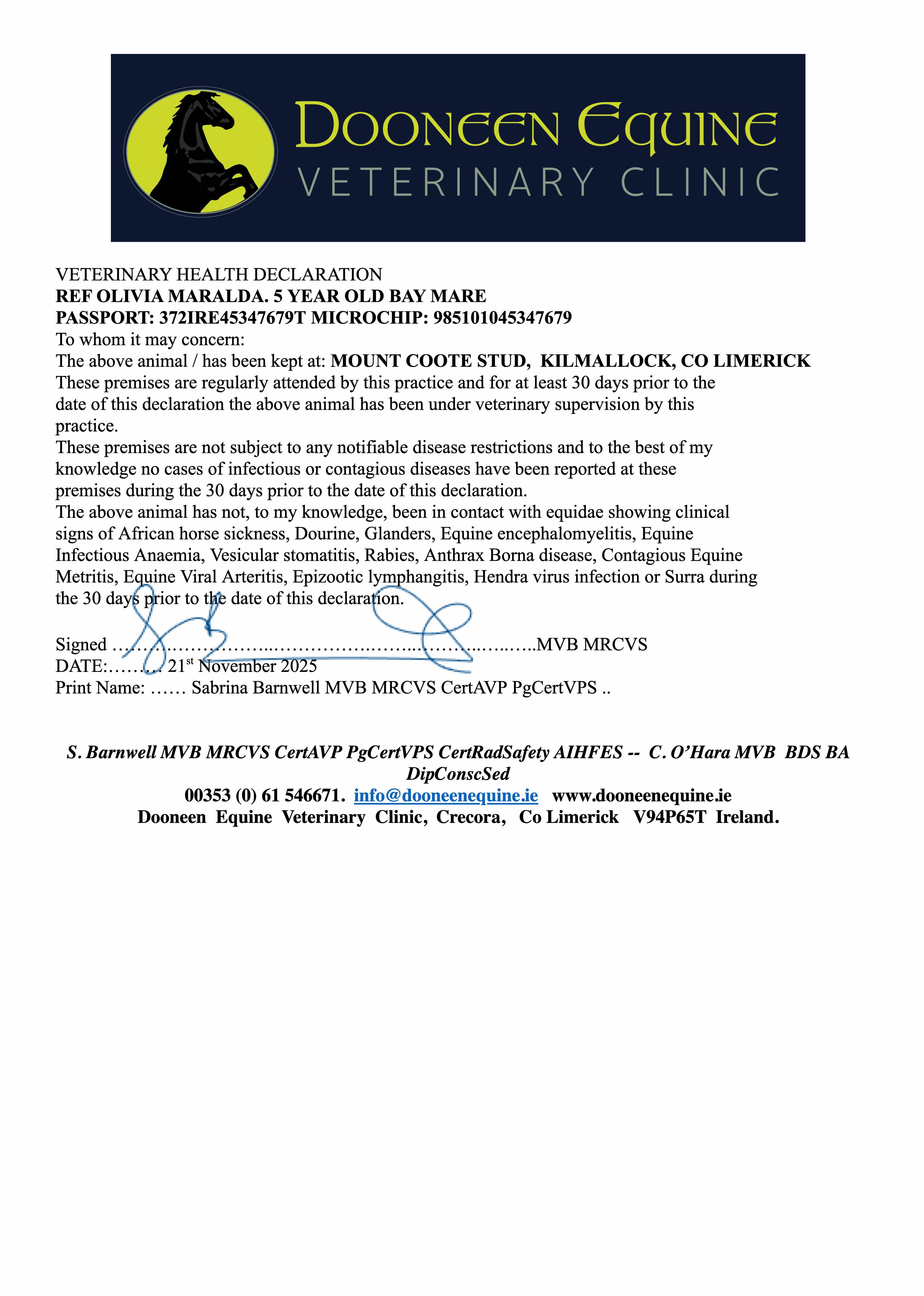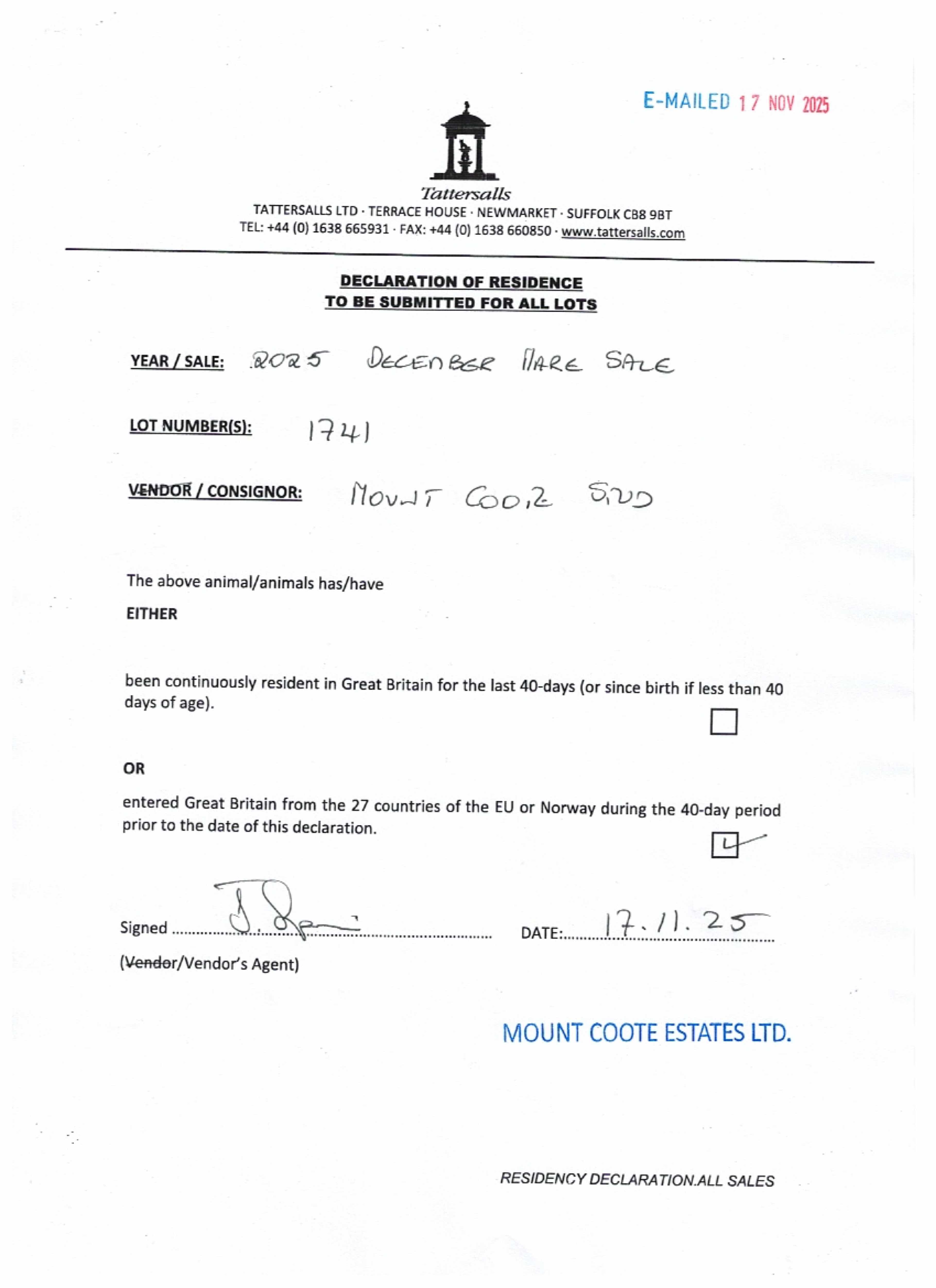 Consignor: Mount Coote Stud, Ireland