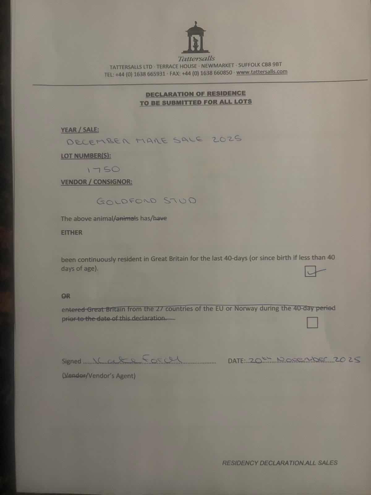 Consignor: Goldford Stud (Agent)