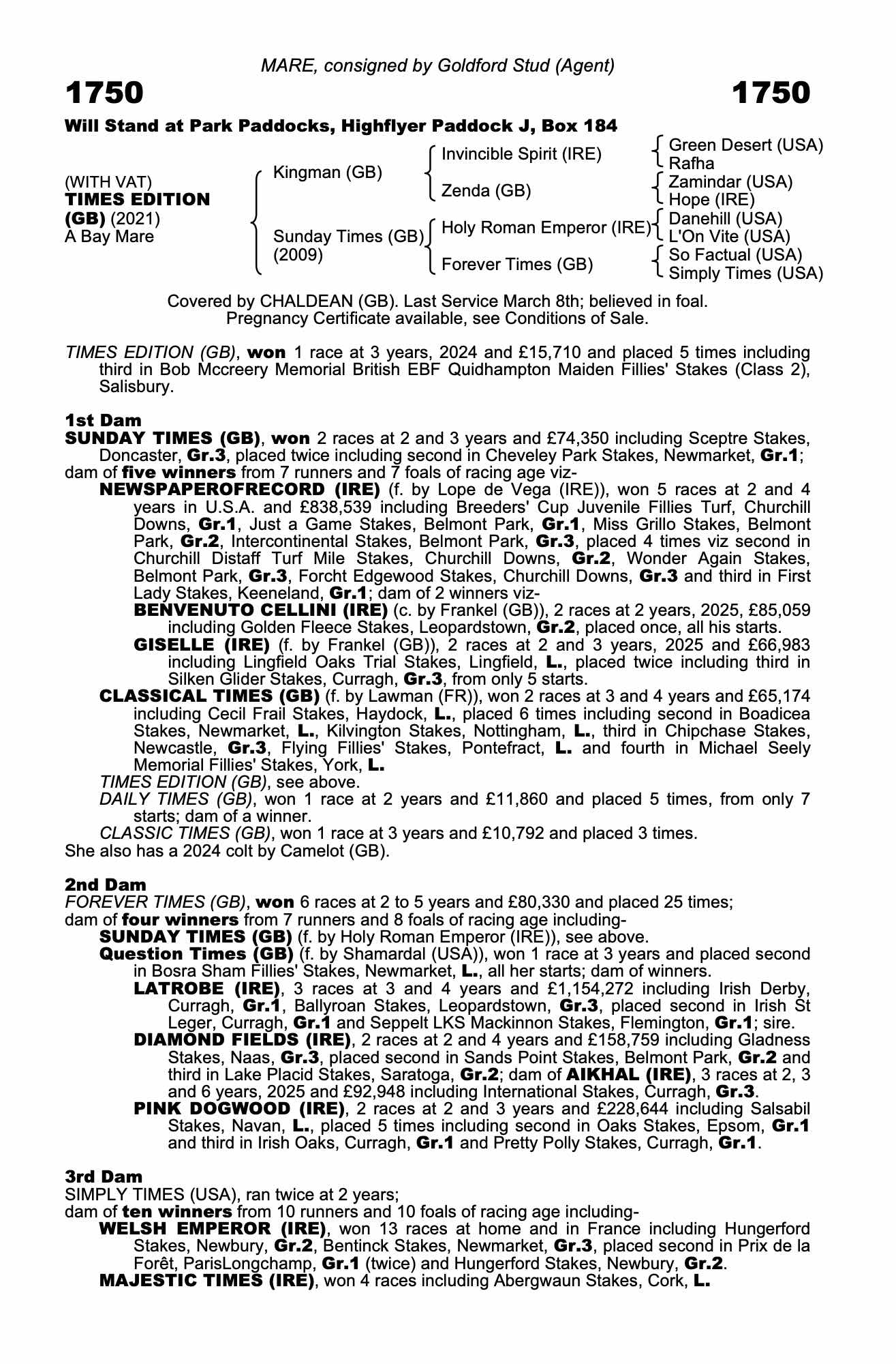 December Mare Sale 2021 lot 1829 Daily Times (GB) (M. by Gleneagles (IRE)), Goldford Stud (Agent)=>London Thoroughbred Services For Erdenheim 800,000 gns