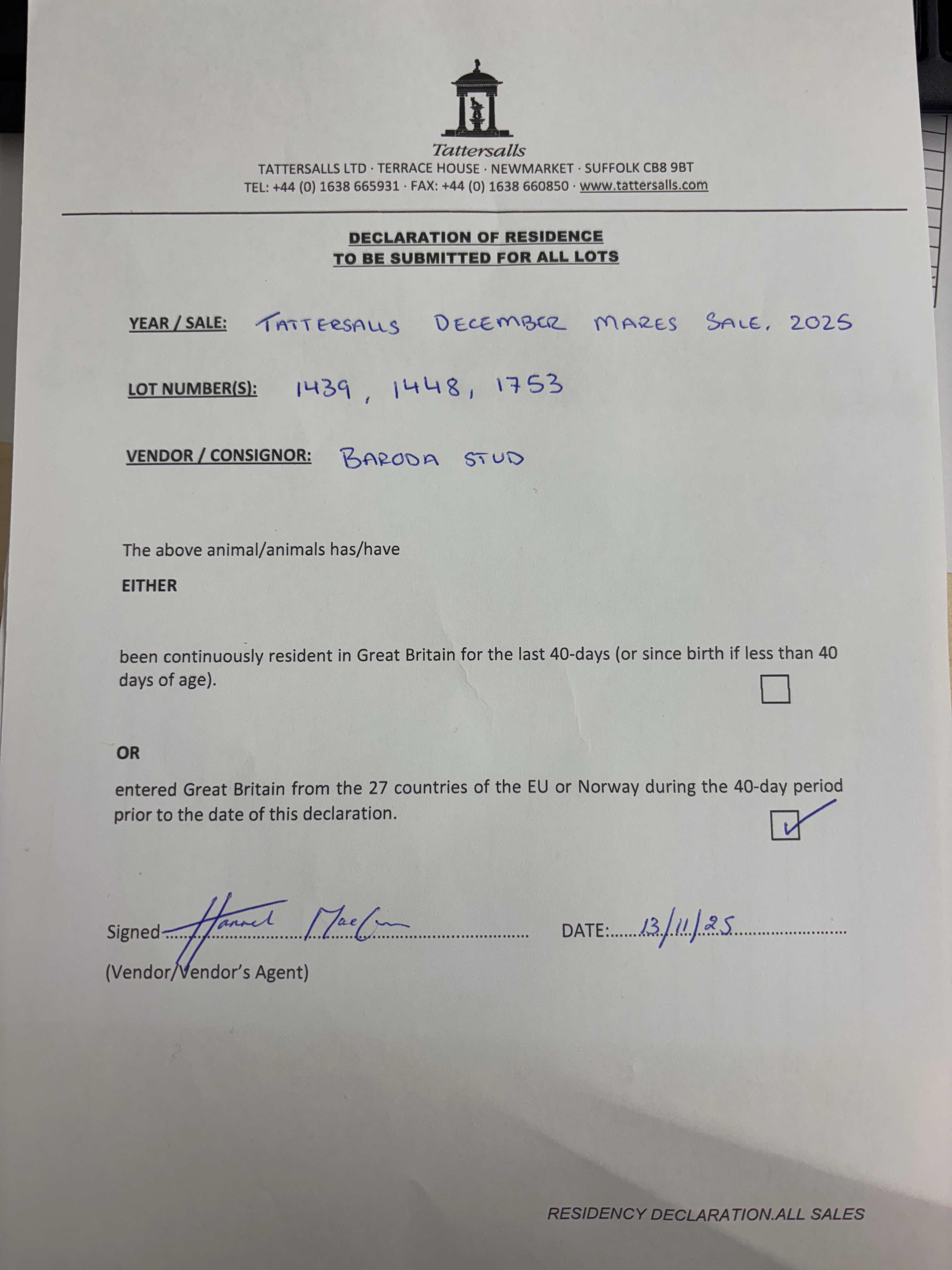 Consignor: Baroda Stud, Ireland