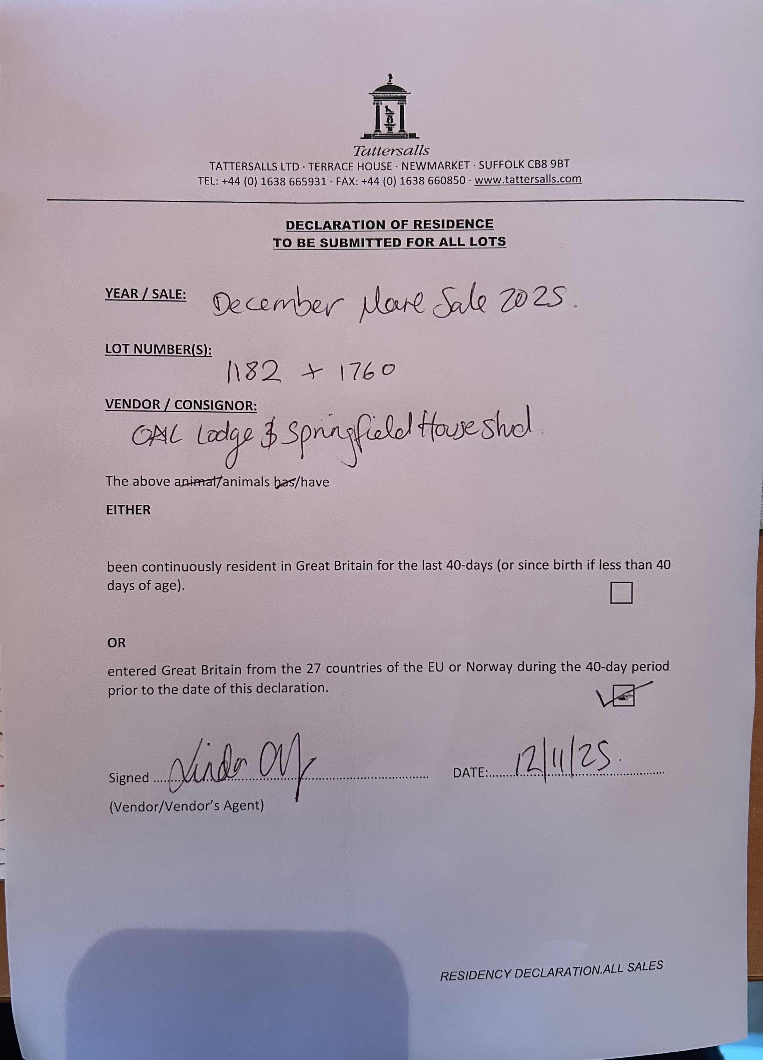 Consignor: Oak Lodge & Springfield House Stud, Ireland
