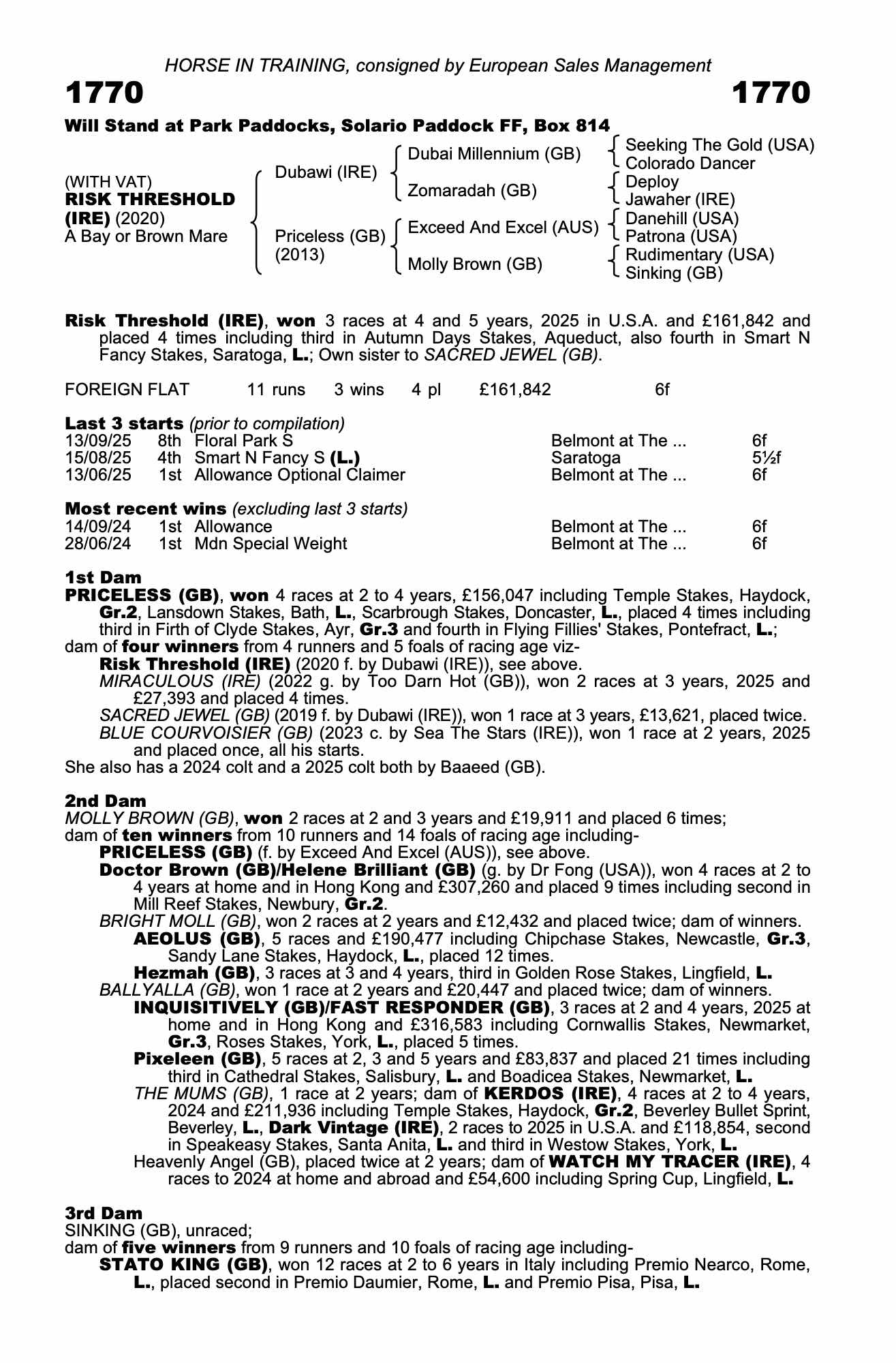 Autumn Horses In Training Sale 2025 lot 1118 Miraculous (IRE) (G. by Too Darn Hot (GB)), Baroda Stud, Ireland=>W Easterby 28,000 gns