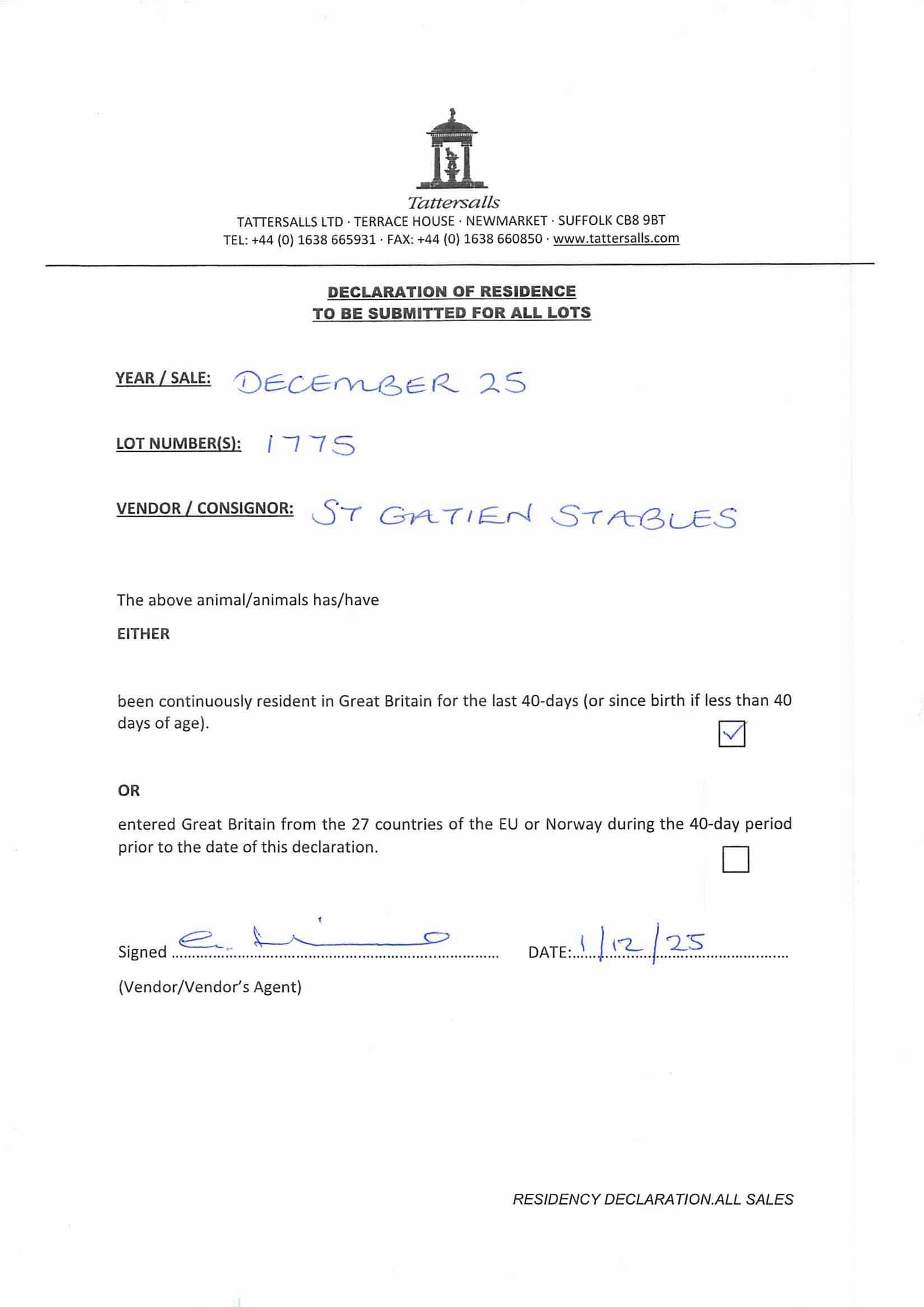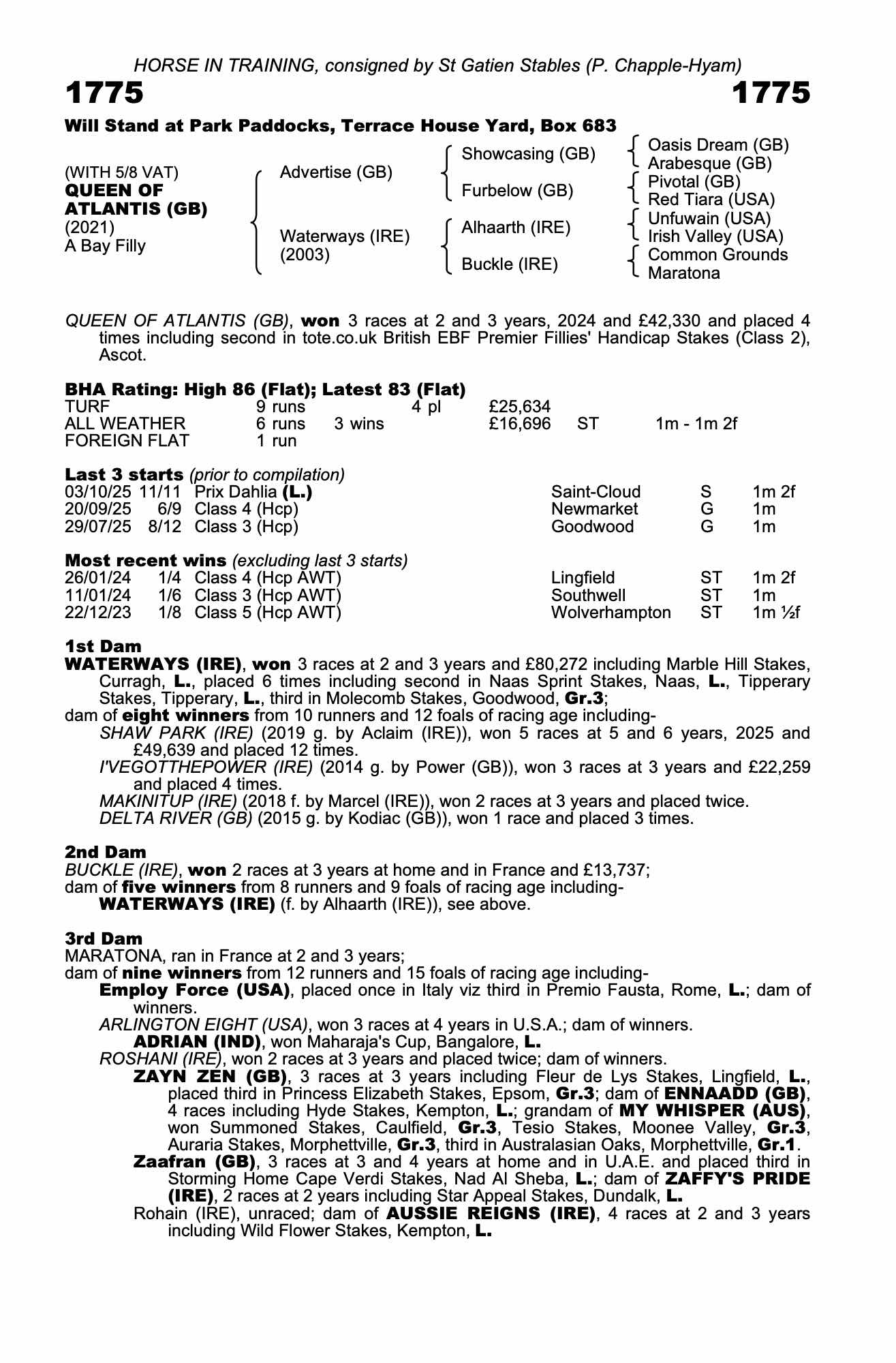 Consignor: St Gatien Stables (P. Chapple-Hyam)