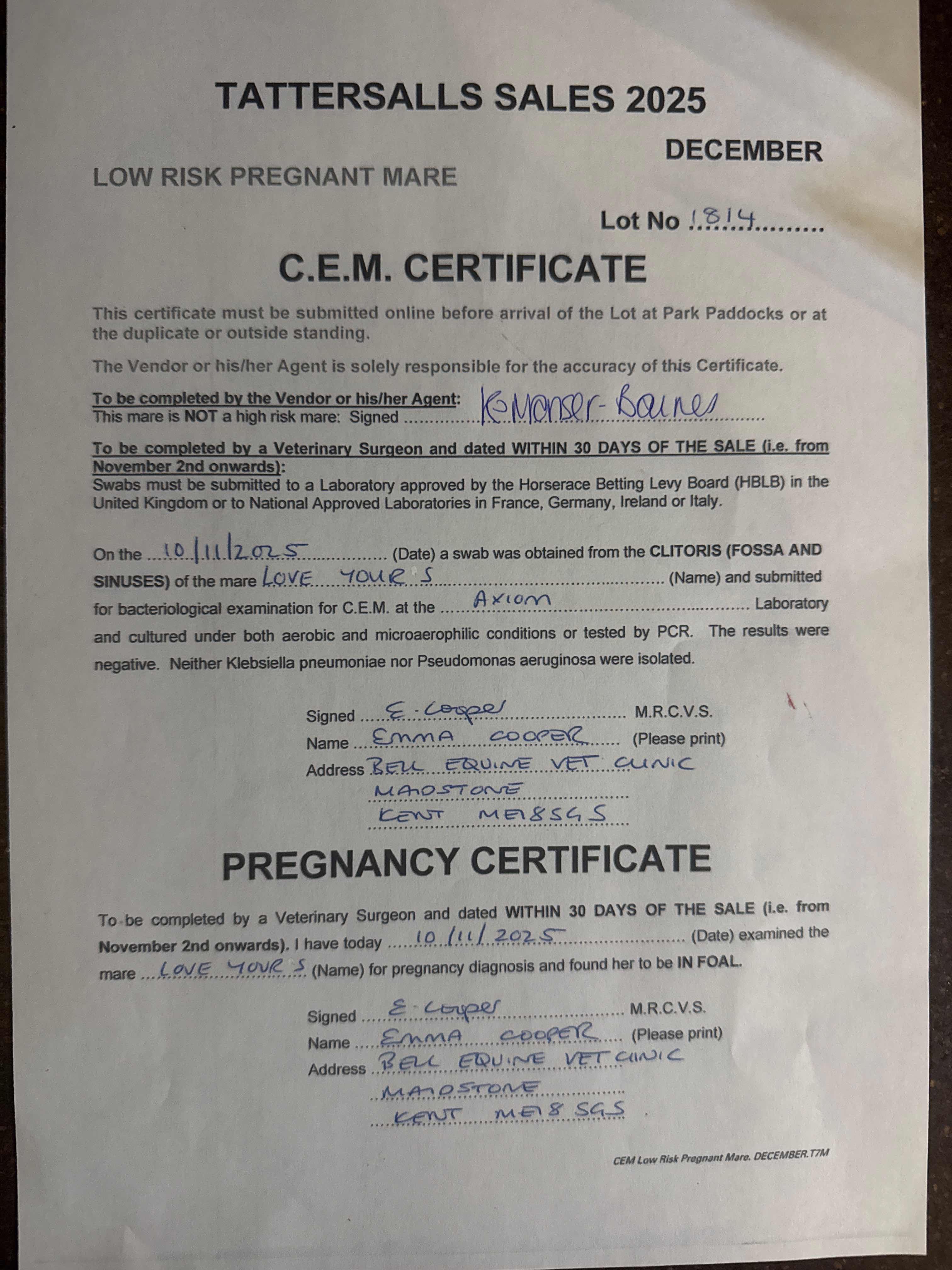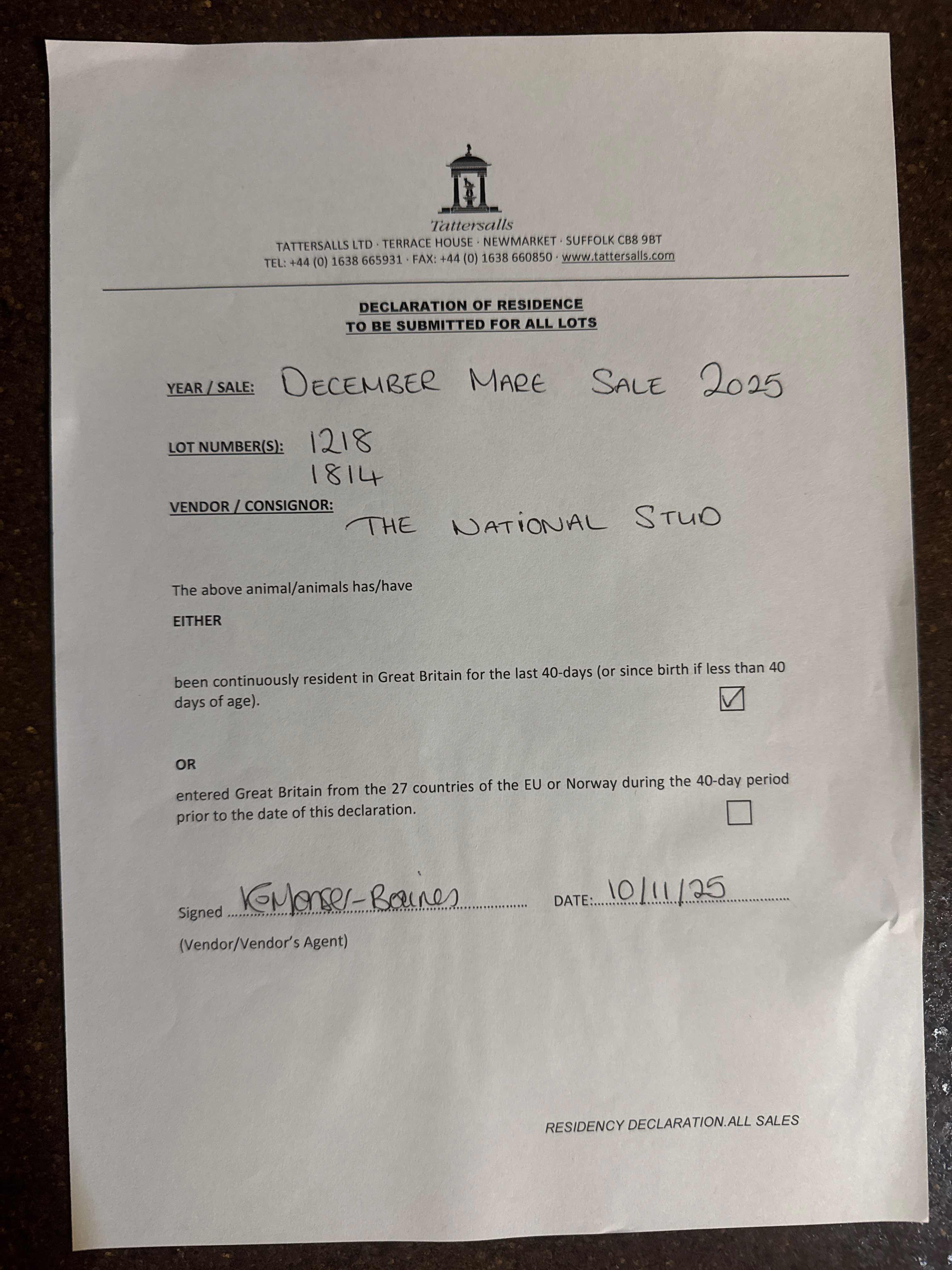 Online Sale - 21st November 2024 lot 102, Gemma Tutty Racing=>Tony Smith 3,000 gns