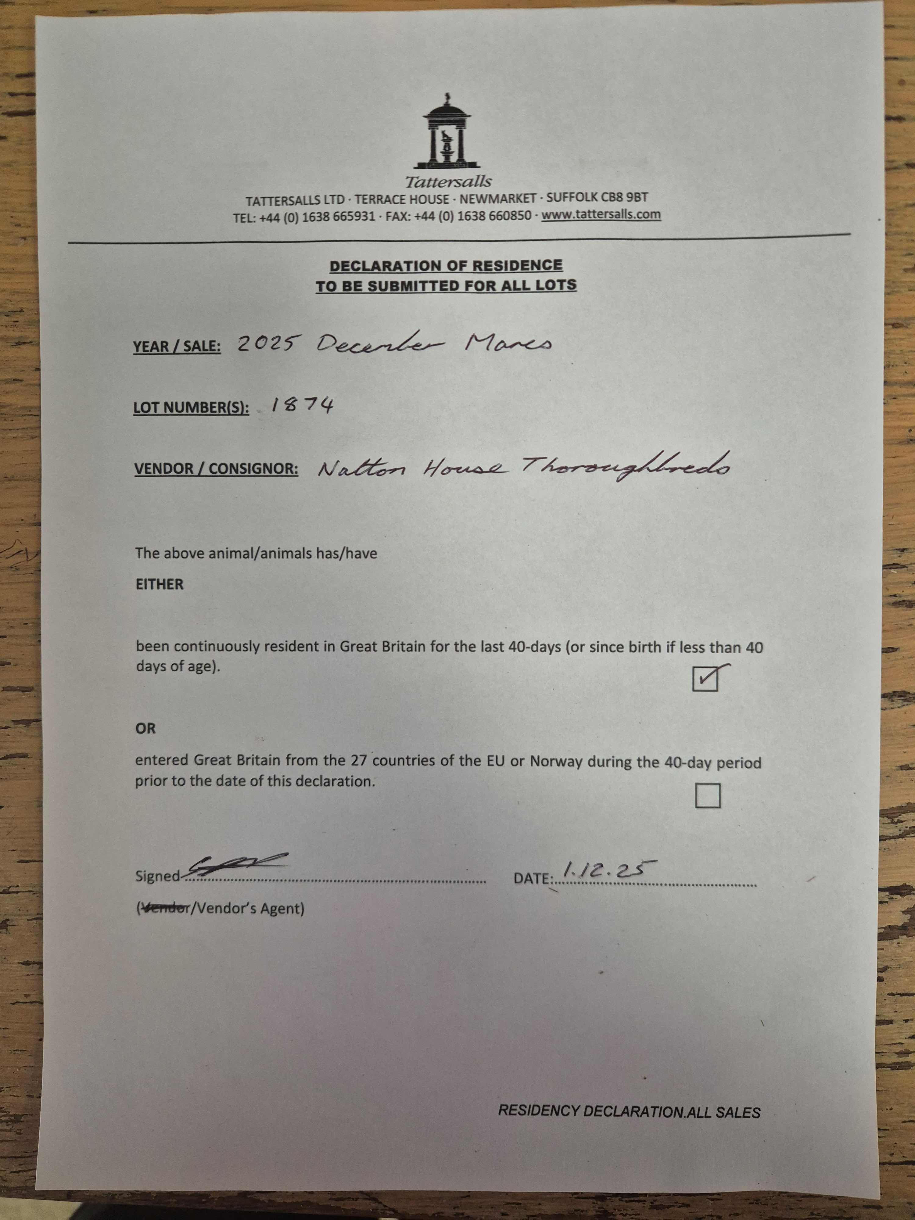 December Foal Sale 2022 lot 1258 F. by Havana Grey (GB) 2022, Natton House Thoroughbreds Ltd.=>Hannah Olden Bloodstock 40,000 gns