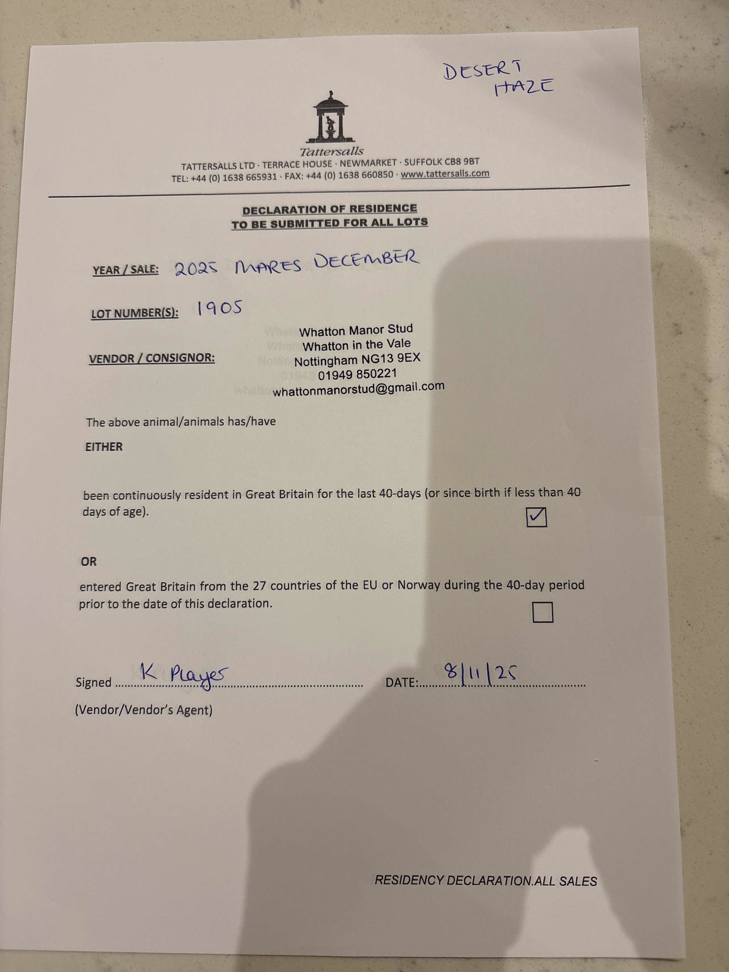 Online Sale - 19th November 2025 lot 24 Mary Carr (GB) (F. by Cracksman (GB)), Whatton Manor Stud=>Vendor 12,500 gns