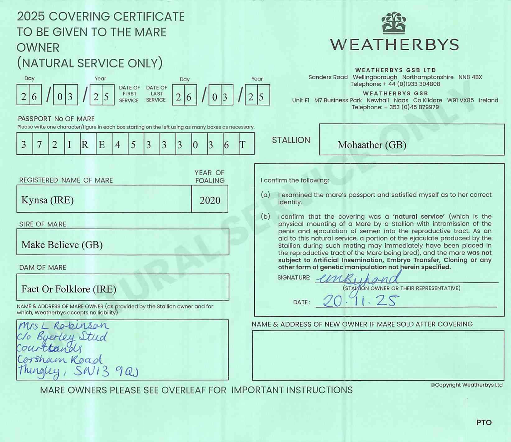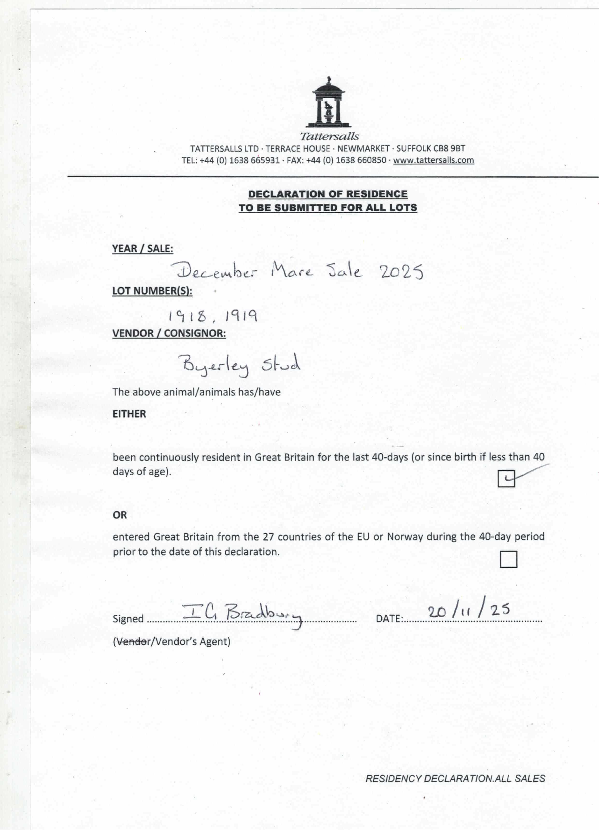 Consignor: Byerley Stud