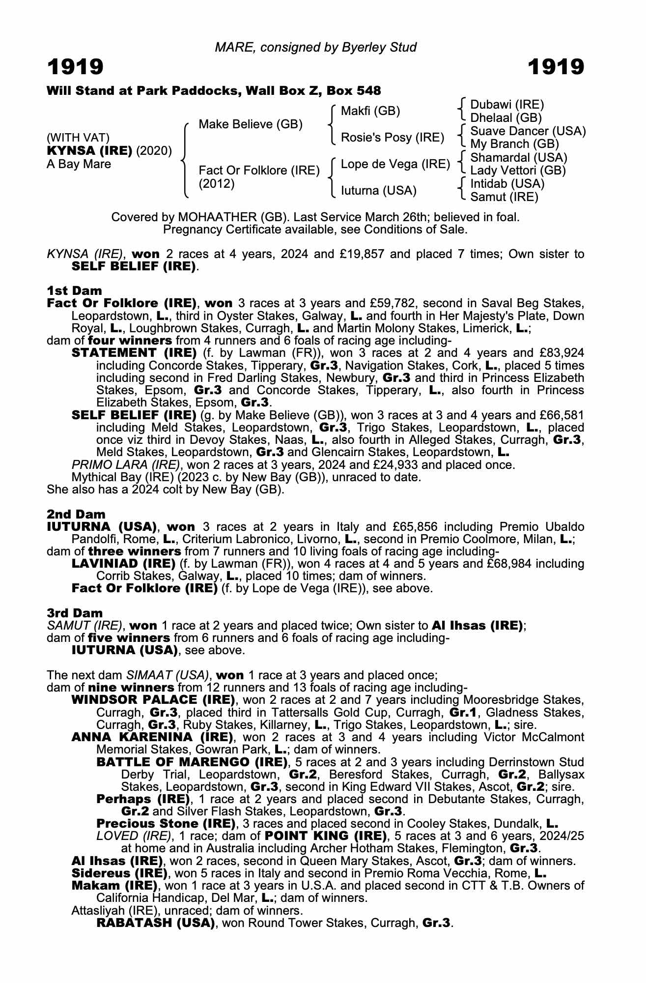 December Mare Sale 2022 lot 1897 Statement (IRE) (F. by Lawman (FR)), Baroda Stud, Ireland=>Blandford Bloodstock 600,000 gns