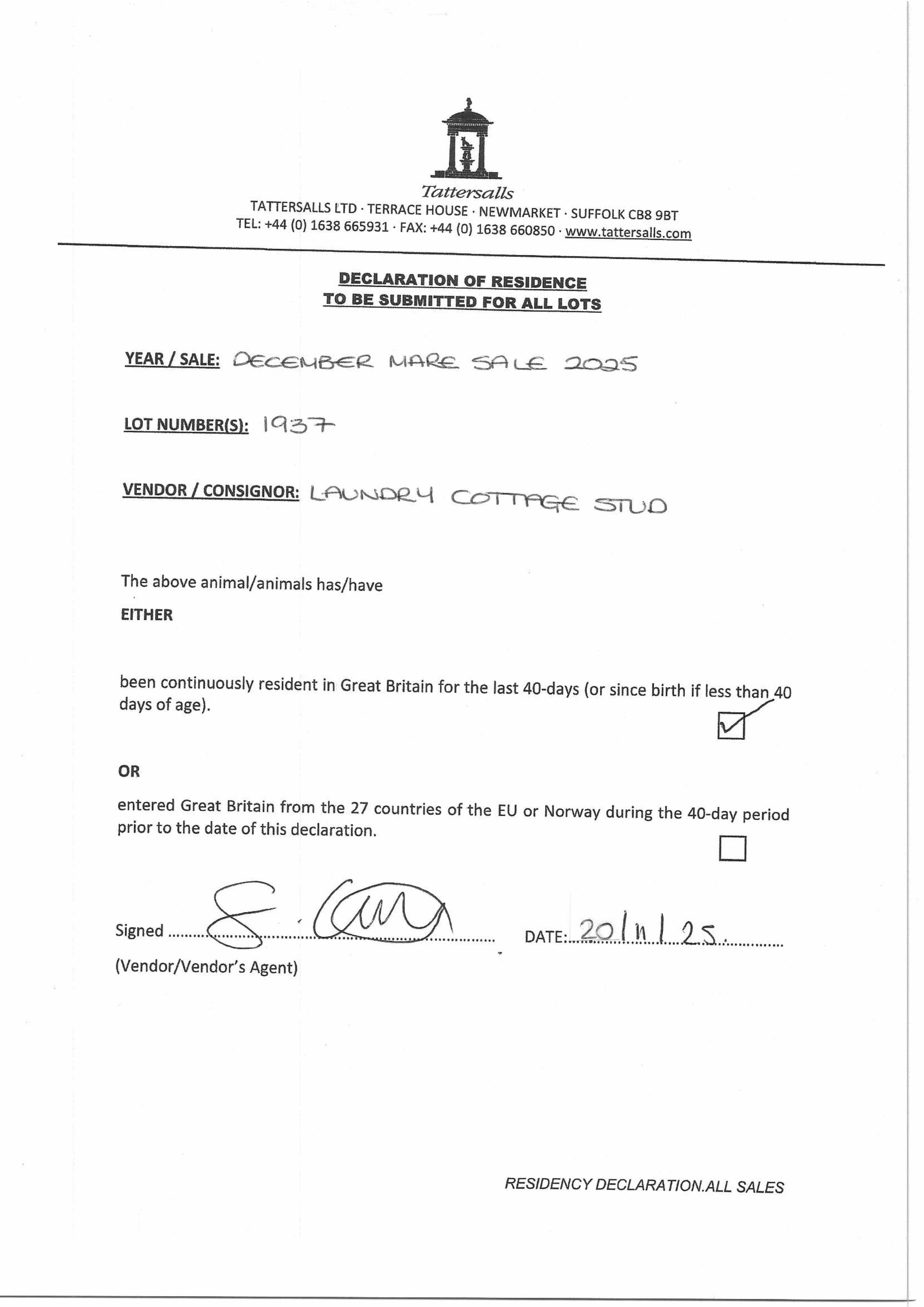 Consignor: Jamie Railton (Agent)