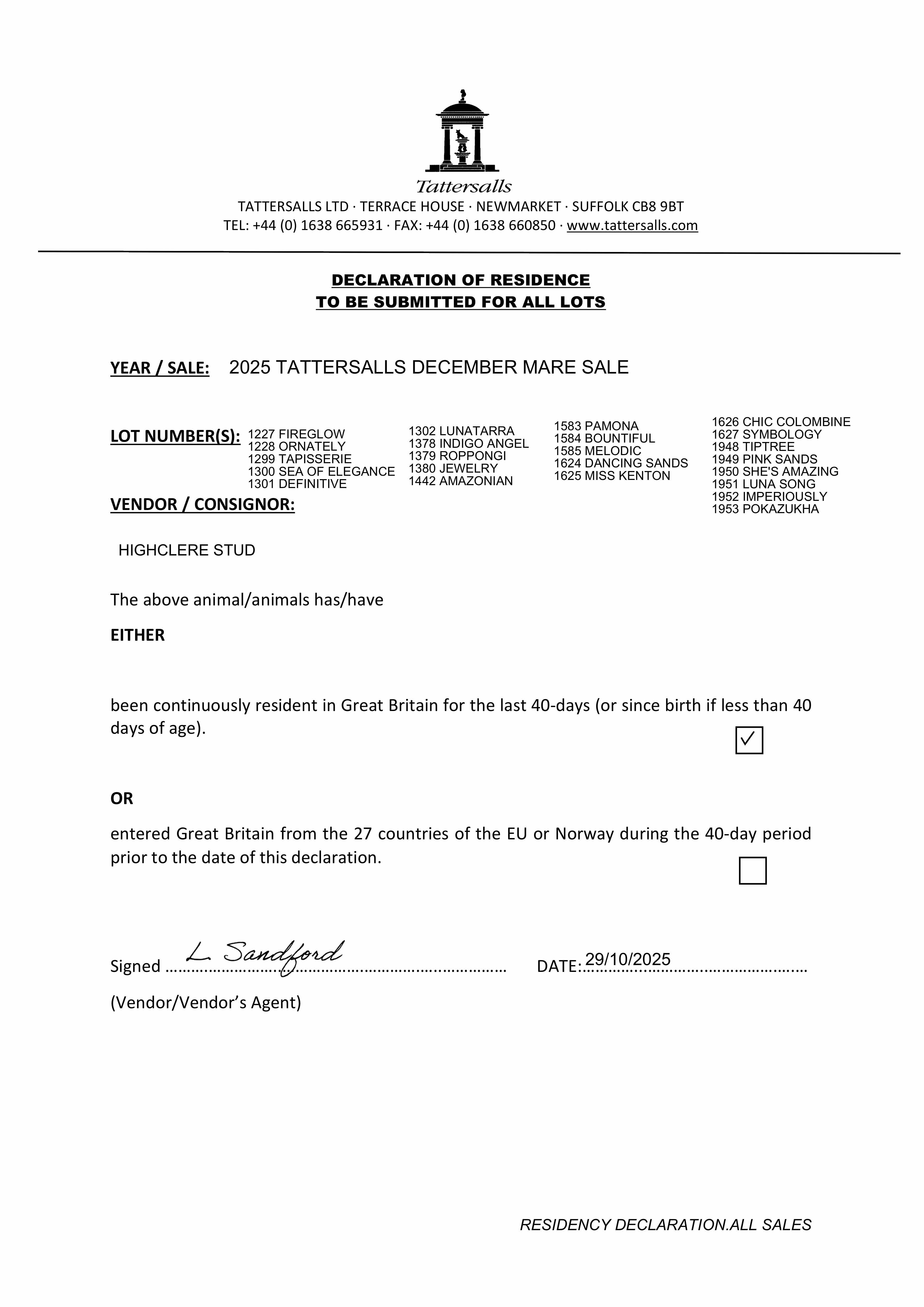 Consignor: Highclere Stud