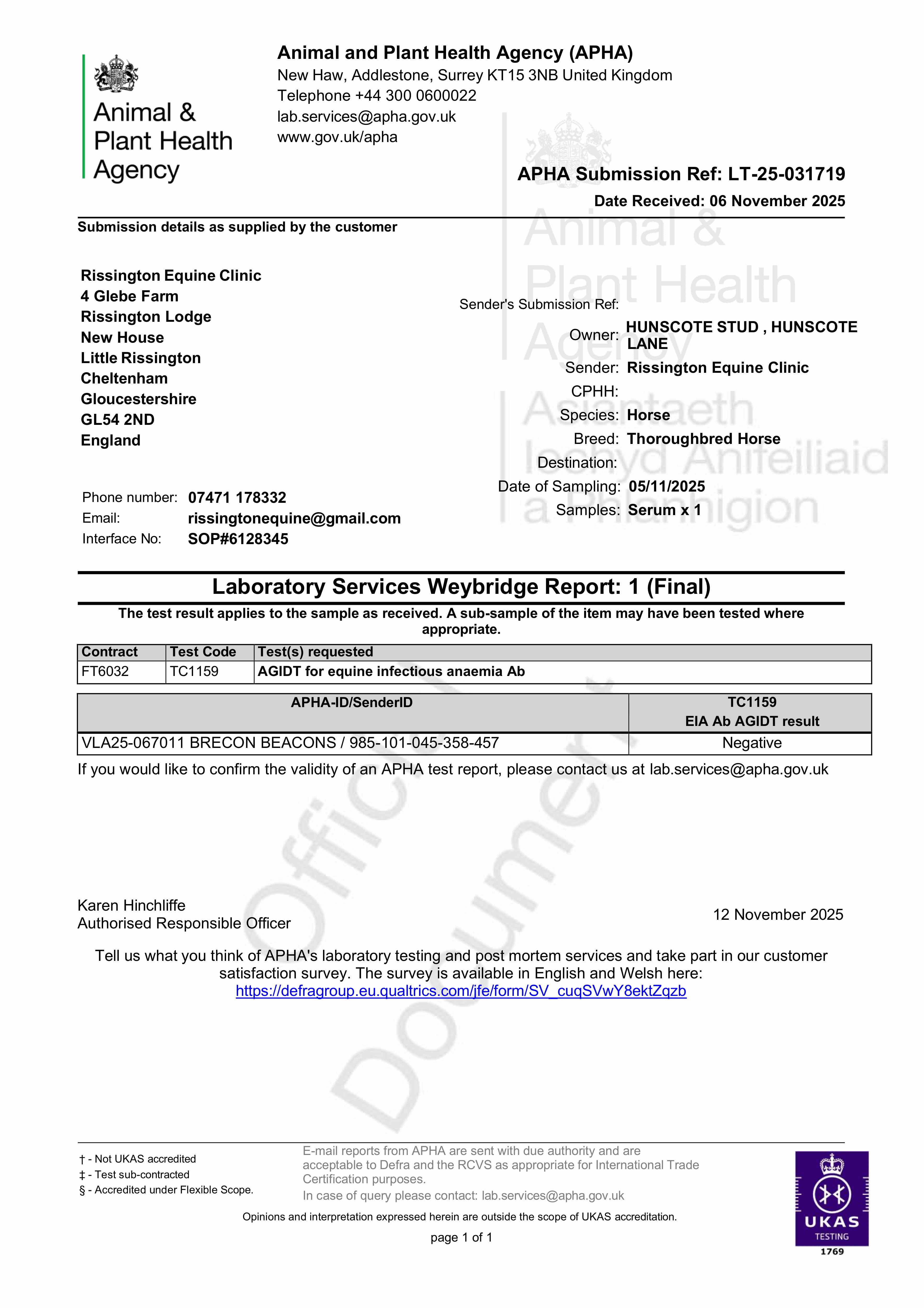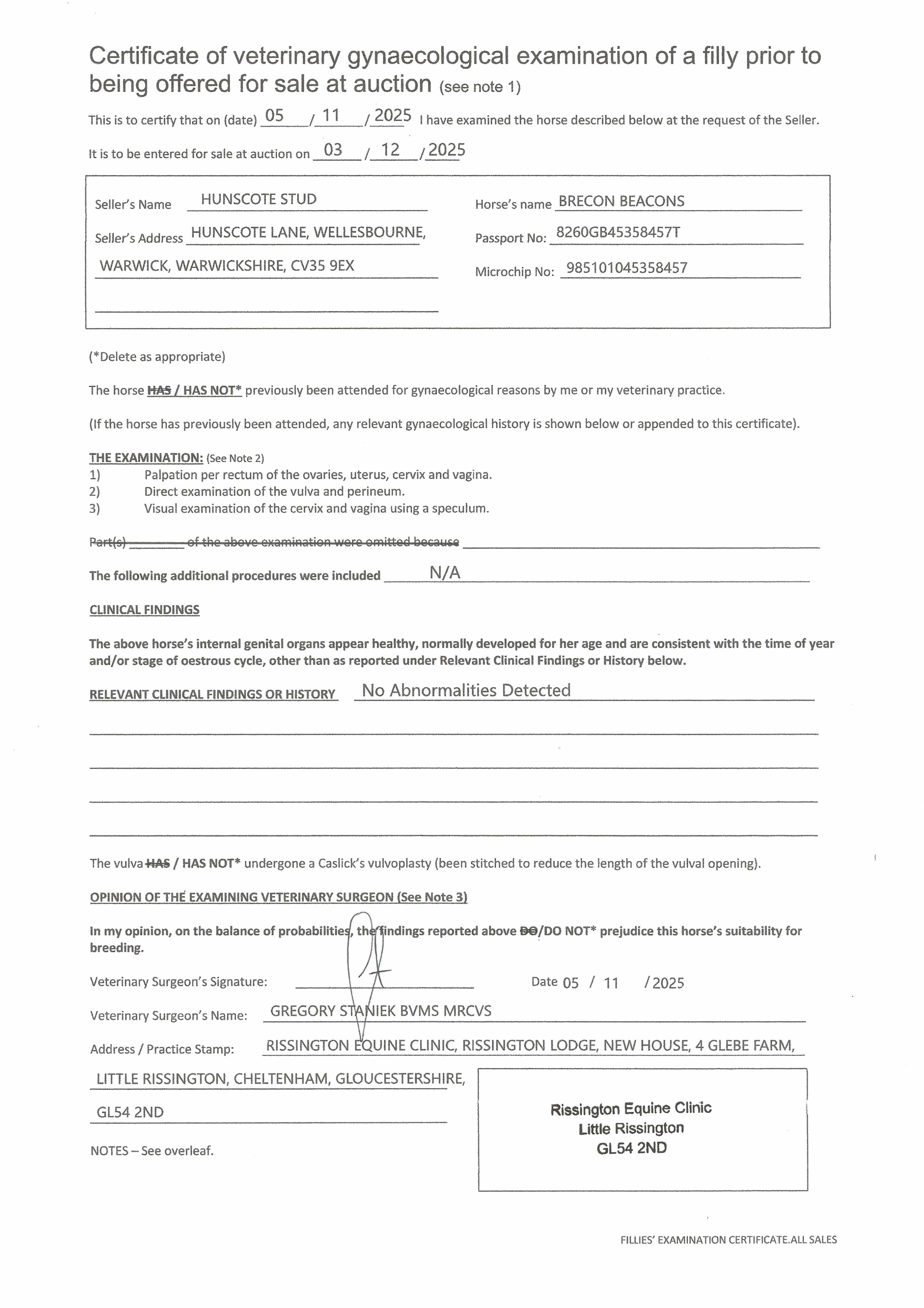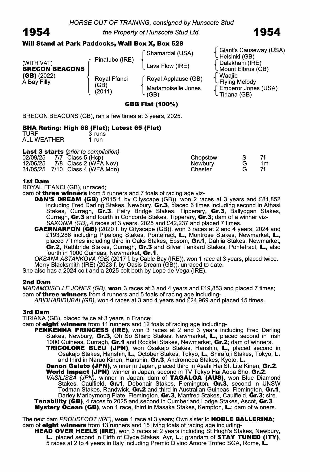 Consignor: Hunscote Stud