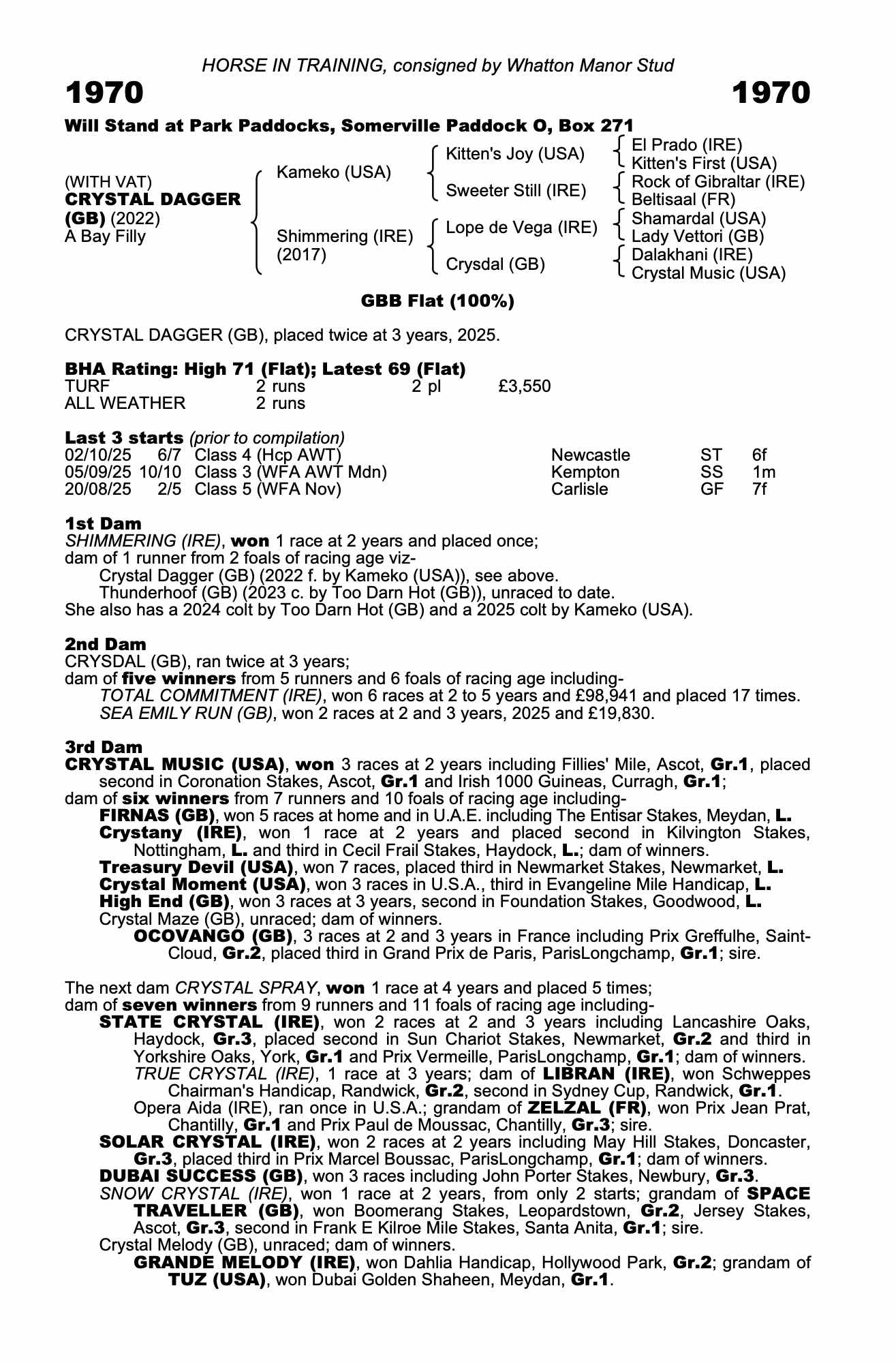 Consignor: Whatton Manor Stud
