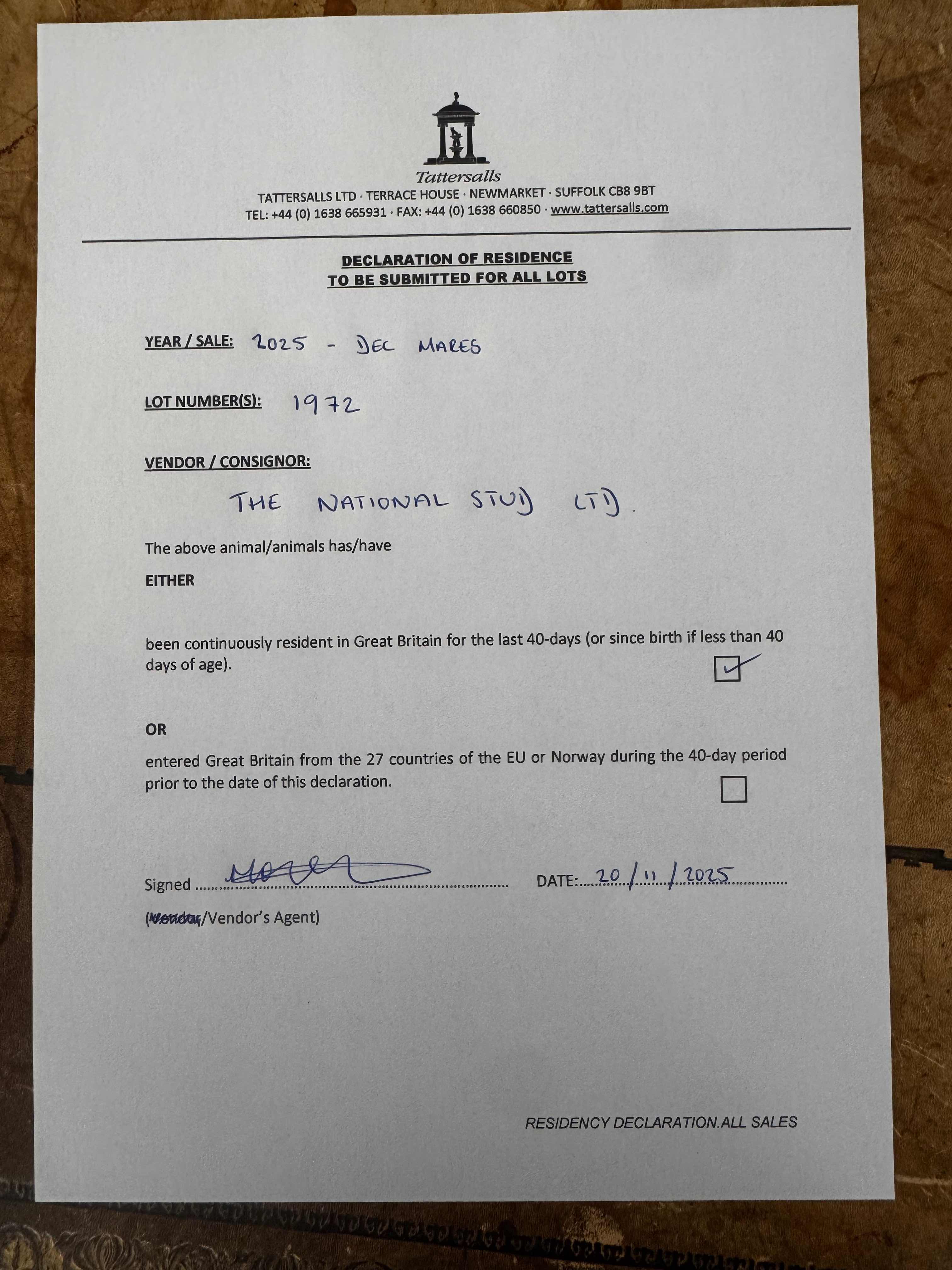 October Yearling Sale, Book 3 2025 lot 1492 F. by Palace Pier (GB) 2024, The National Stud Ltd.=>Bolat Kozhamseitov 18,000 gns