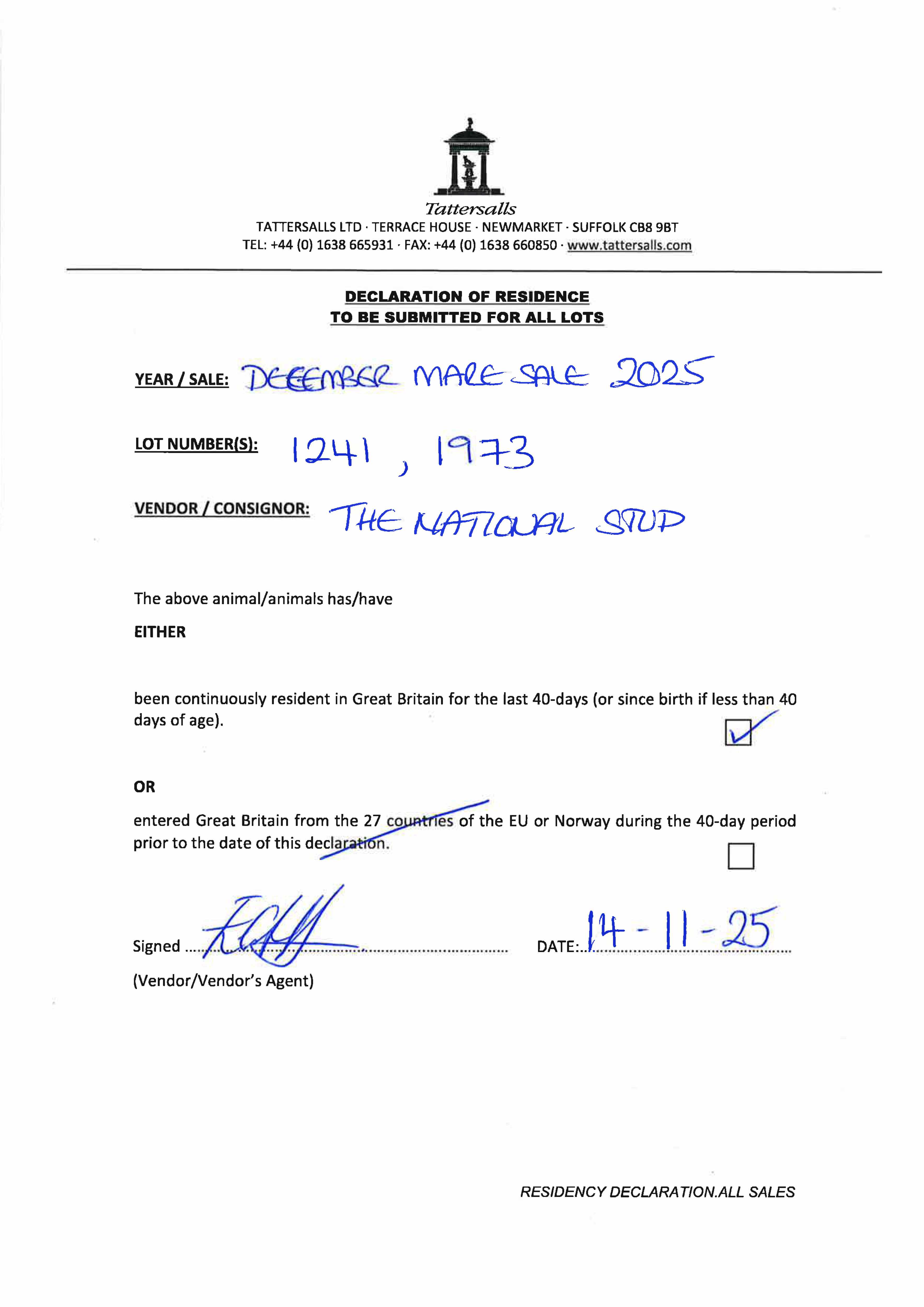 Consignor: The National Stud Ltd.