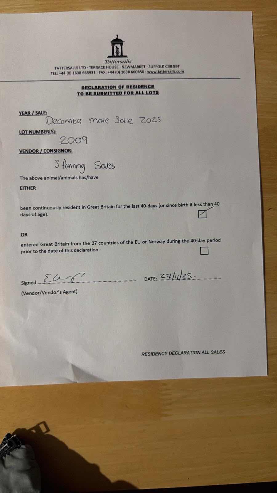 Consignor: S Fanning Sales