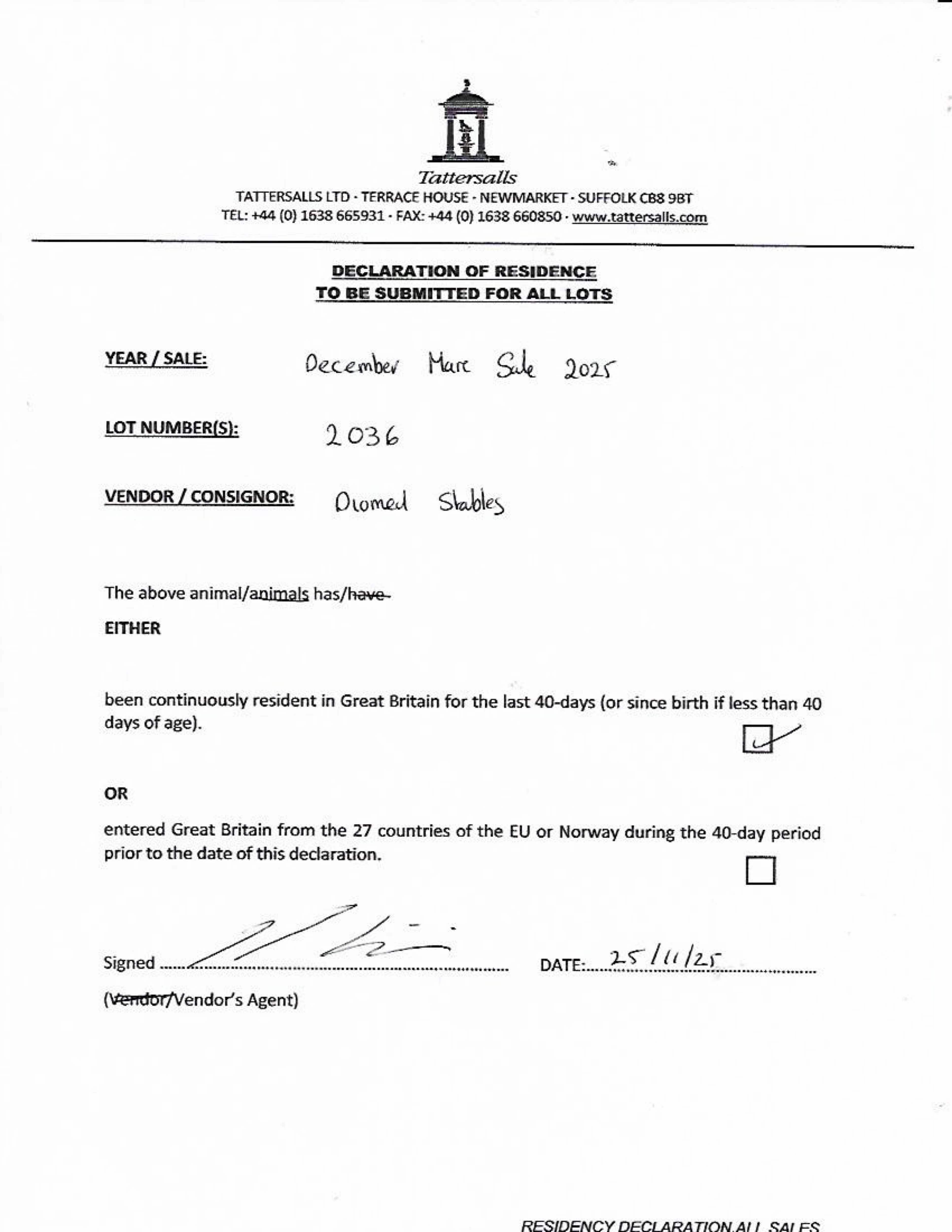 Consignor: Diomed Stables (S. Williams)