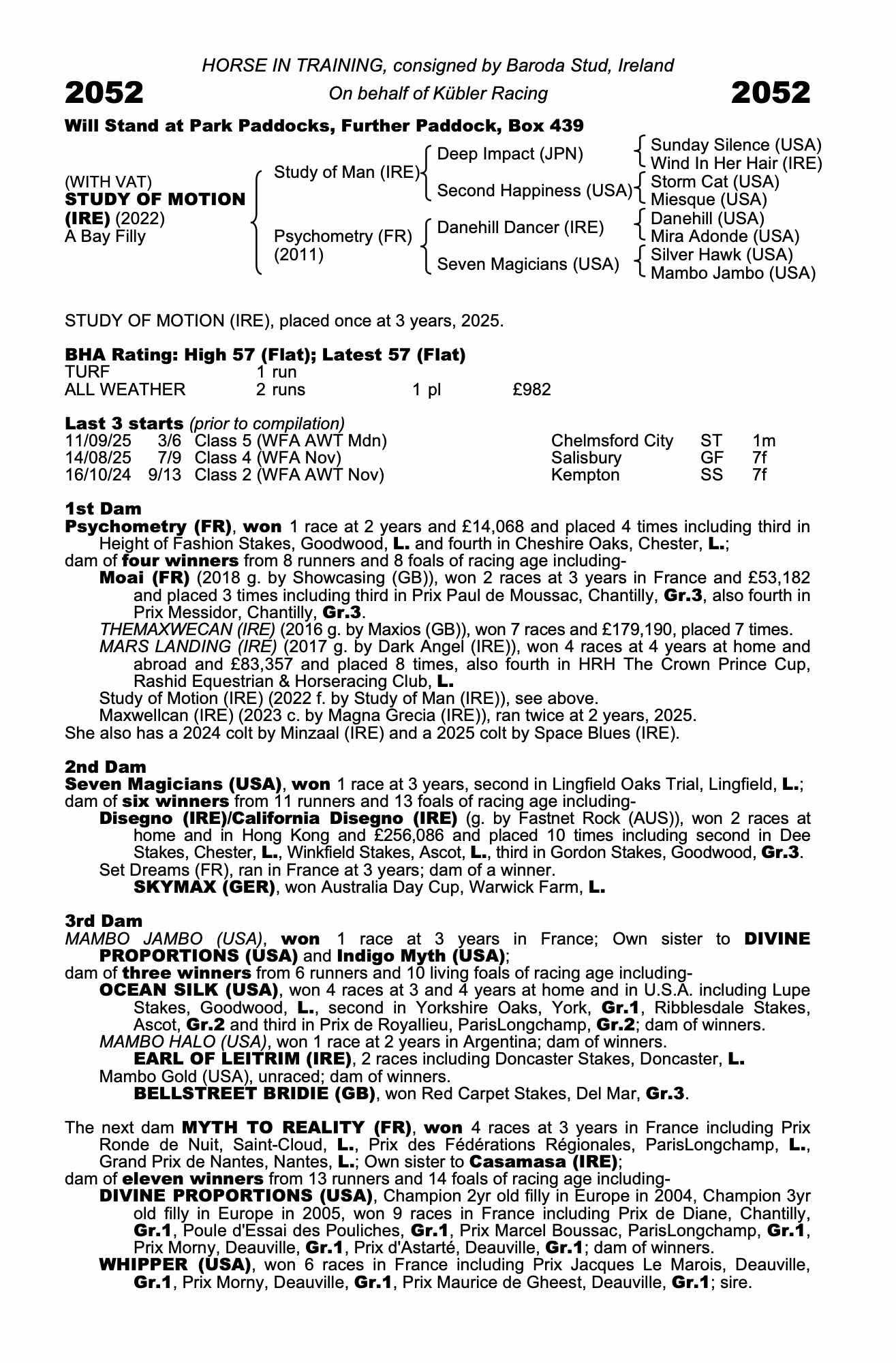 Consignor: Baroda Stud, Ireland