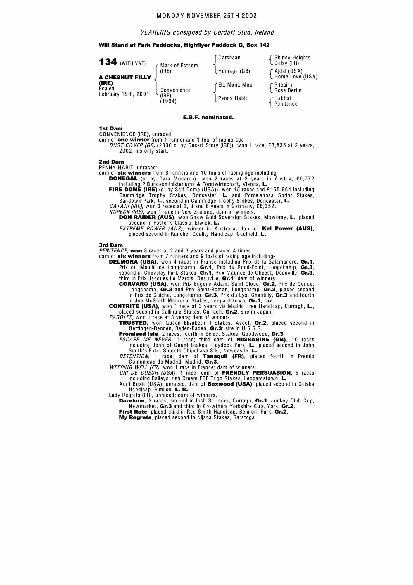 Consignor: Corduff Stud, Ireland