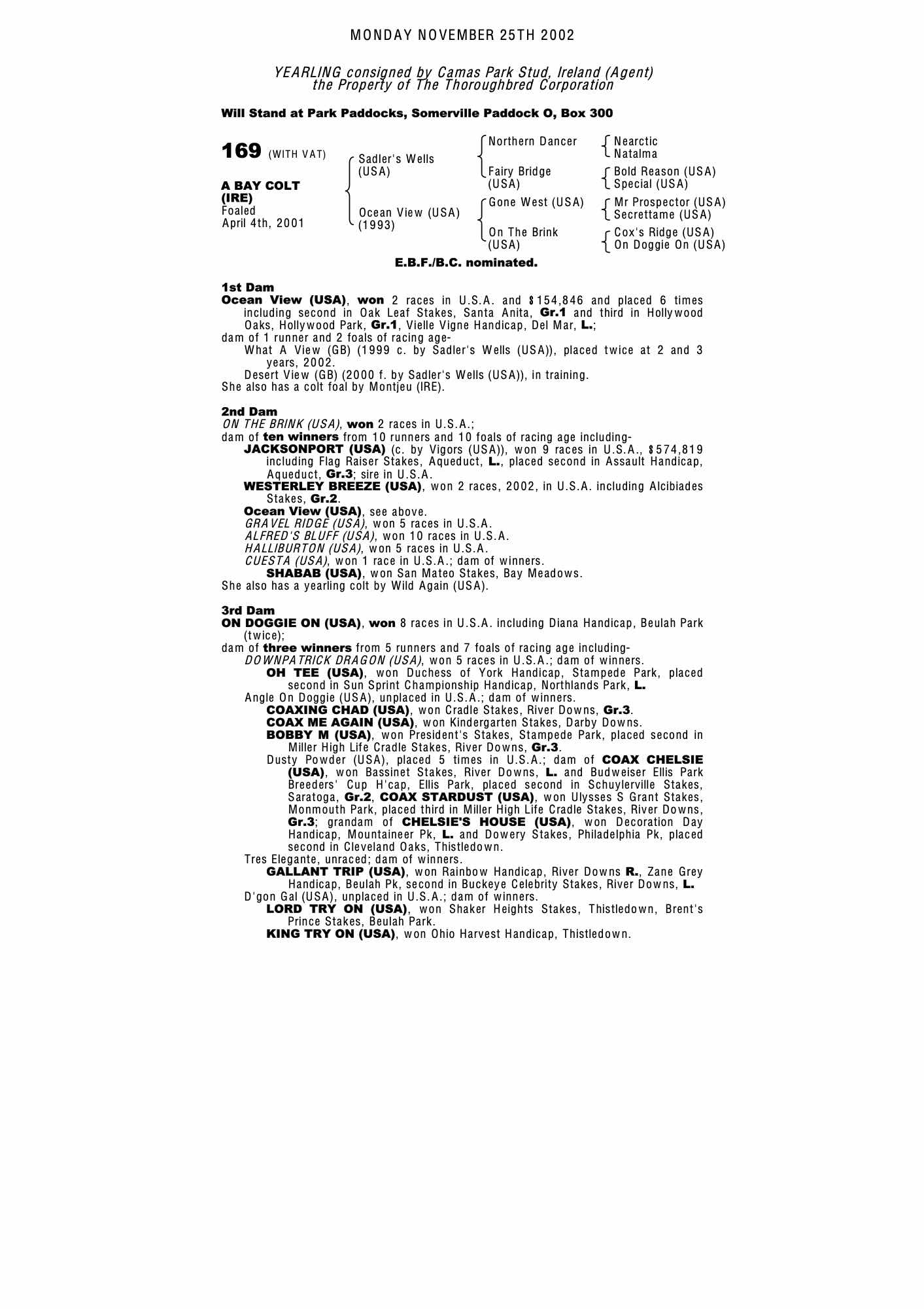 October Yearling Sale, Book 1 2003 lot 319 C. by Montjeu (IRE) 2002, Kilshannig Stud, Ireland (Agent)=>Gerard Butler 68,000 gns