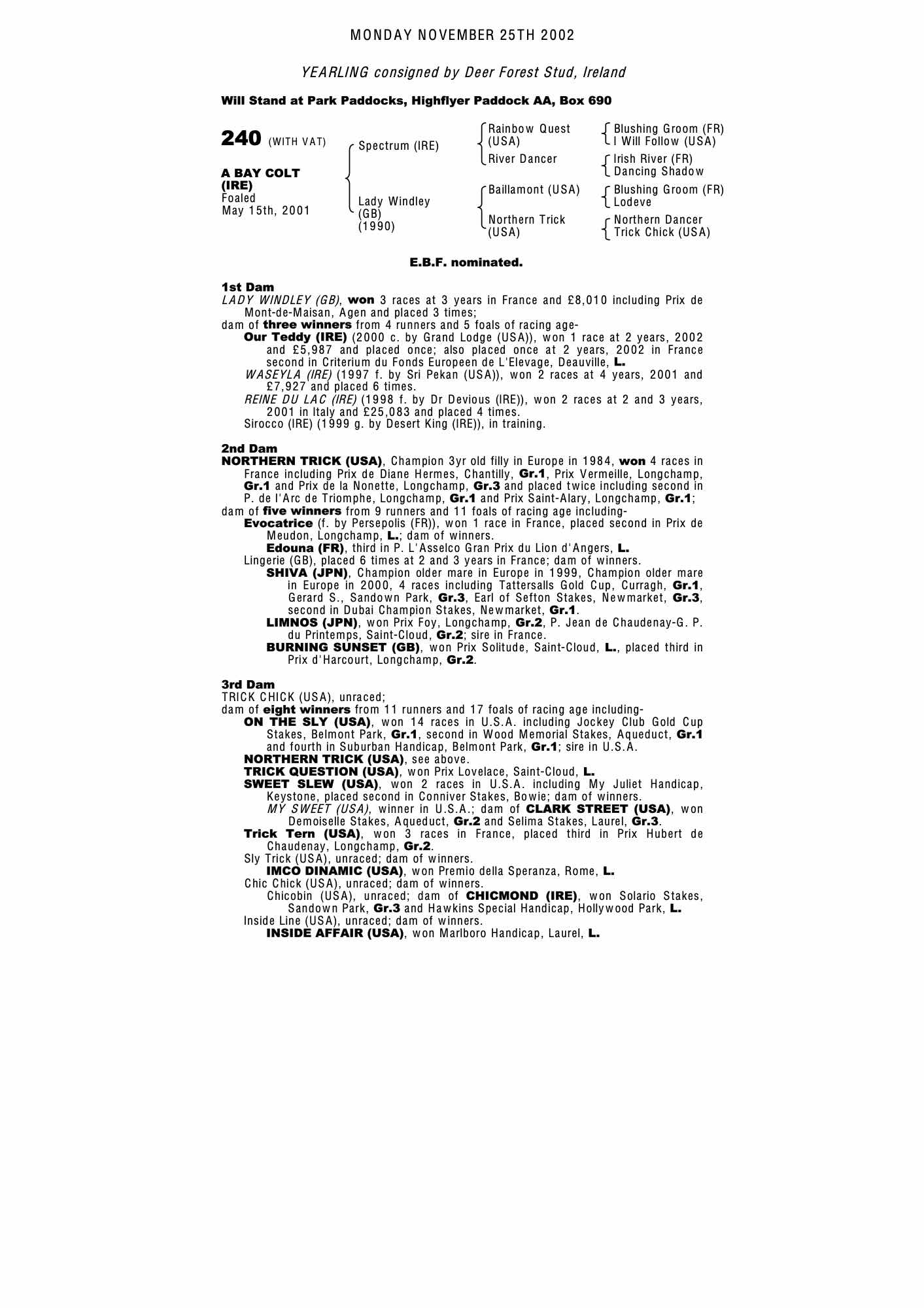October Yearling Sale 2000 lot 846 C. by Desert King (IRE) , East Peterel Field Farm=>David F Howard 22,000 gns