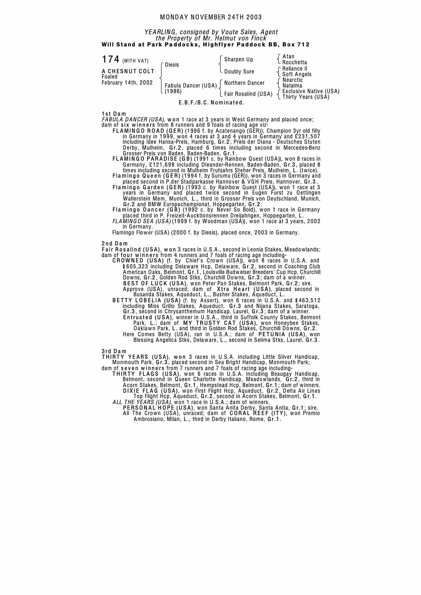 December Mare Sale 2003 lot 2072 Flamingo Sea (USA) (M. by Woodman (USA)), Voute Sales, Agent=>German International Bloodstock 50,000 gns