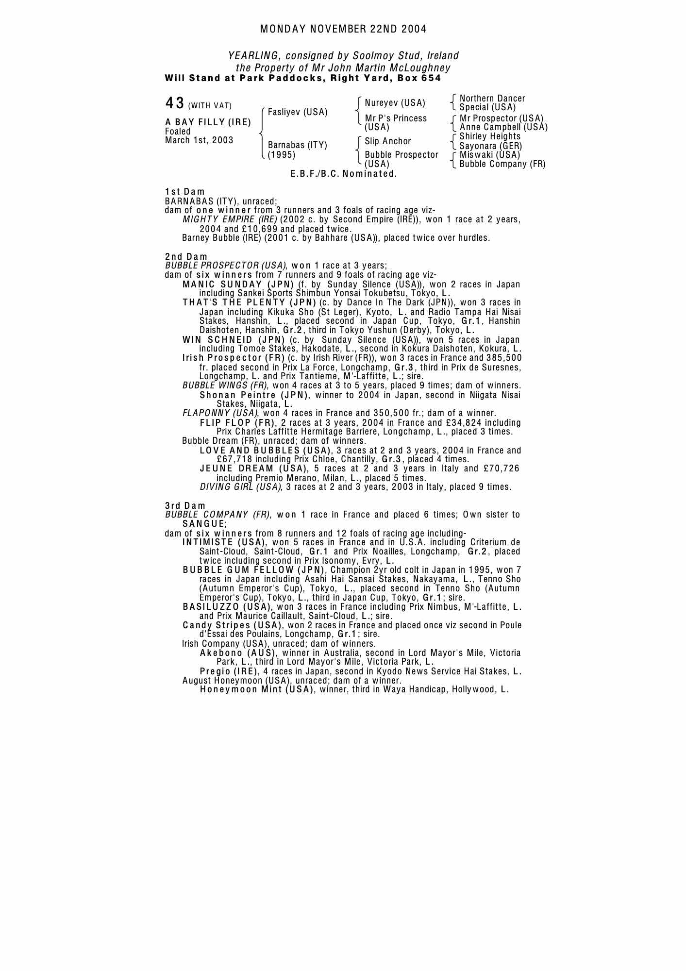 Breeze Up Sale 2003 lot 156 C. by Bahhare (USA) 2001, Bansha House Stables, Ireland=>Lot Not Sold 4,500 gns
