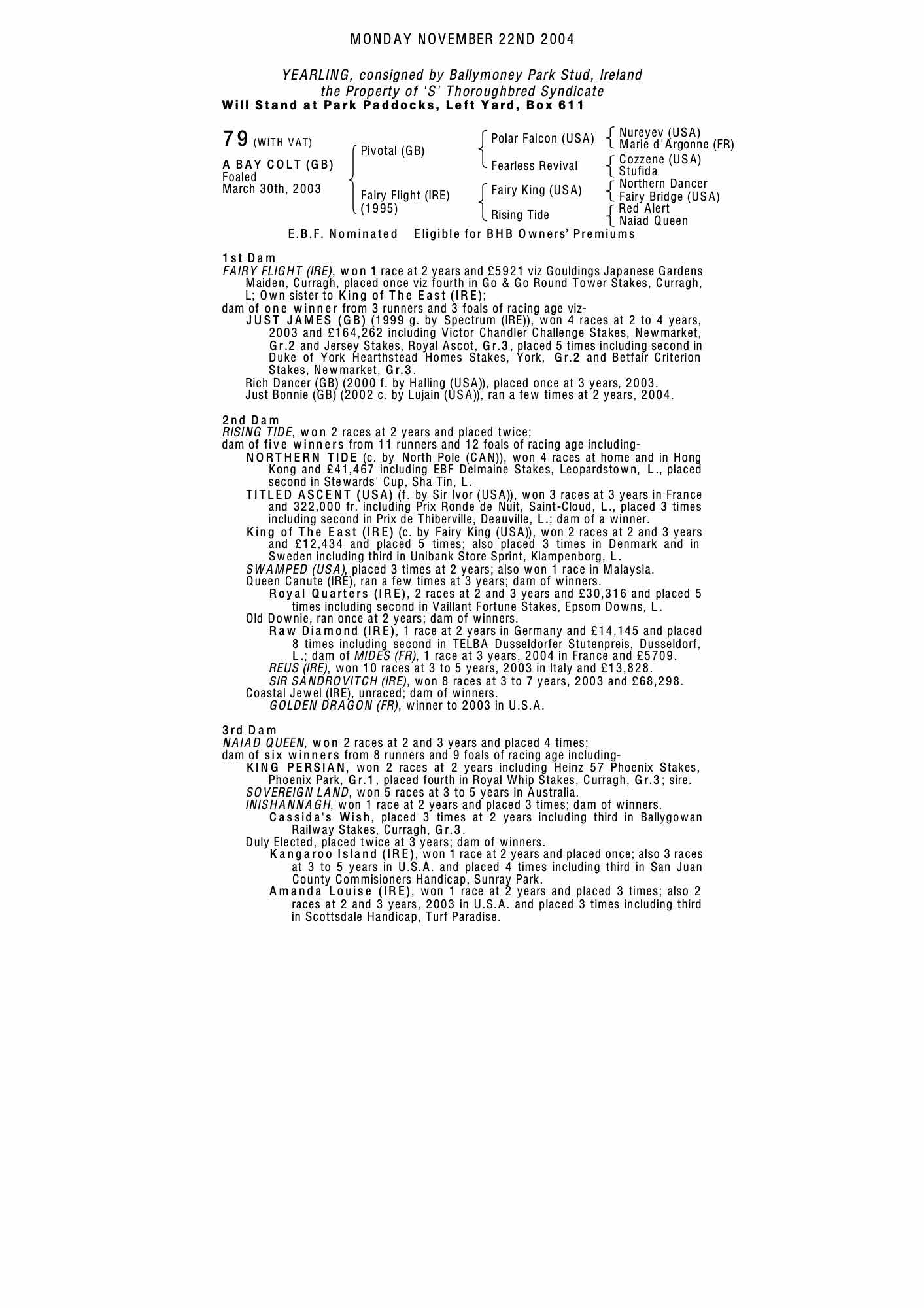 Consignor: Ballymoney Park Stud, Ireland
