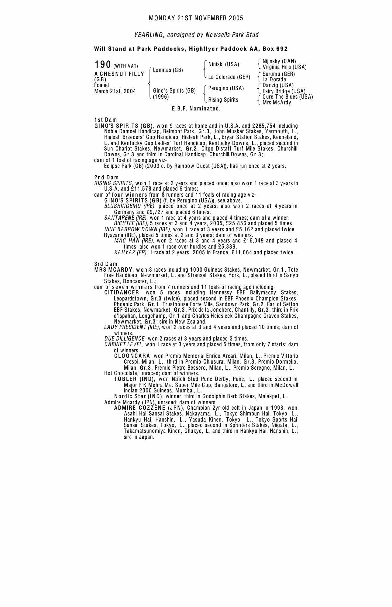 December Mare Sale 2008 lot 2612 Ginos Destination (GB) (F. by Dubai Destination (USA)), Newsells Park Stud Ltd.=>Osama Omar Muttawa 1,000 gns
