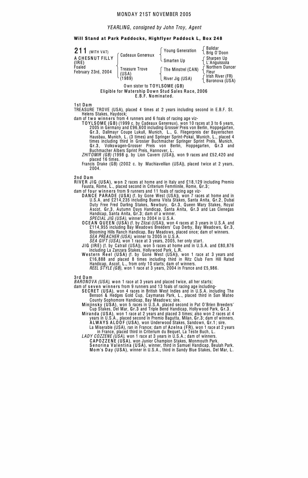 December Foal Sale 2006 lot 1062 F. by Diktat (GB) 2006, John Troy, Agent=>Eugene McDermott 18,000 gns
