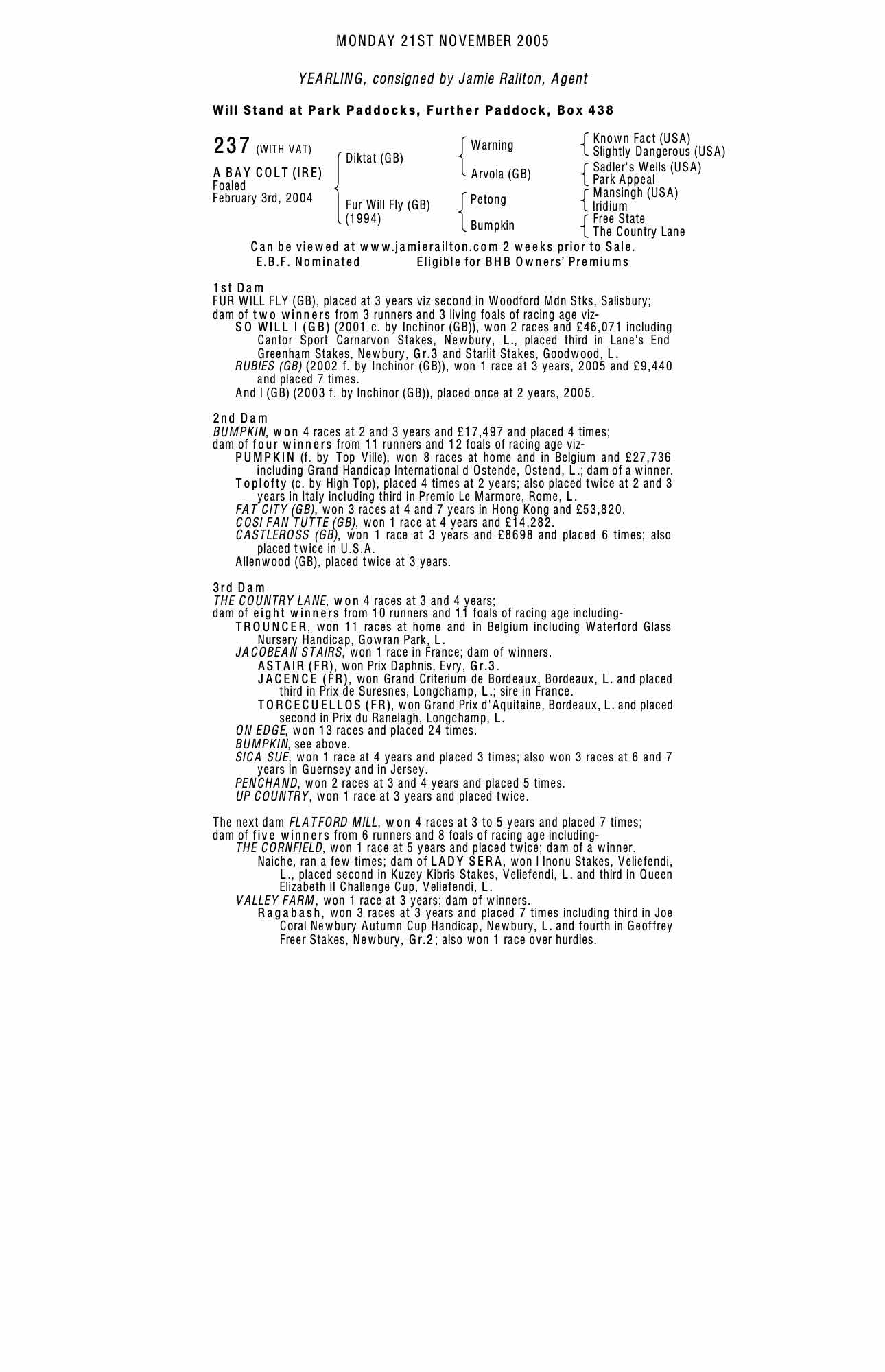 Consignor: Jamie Railton, Agent