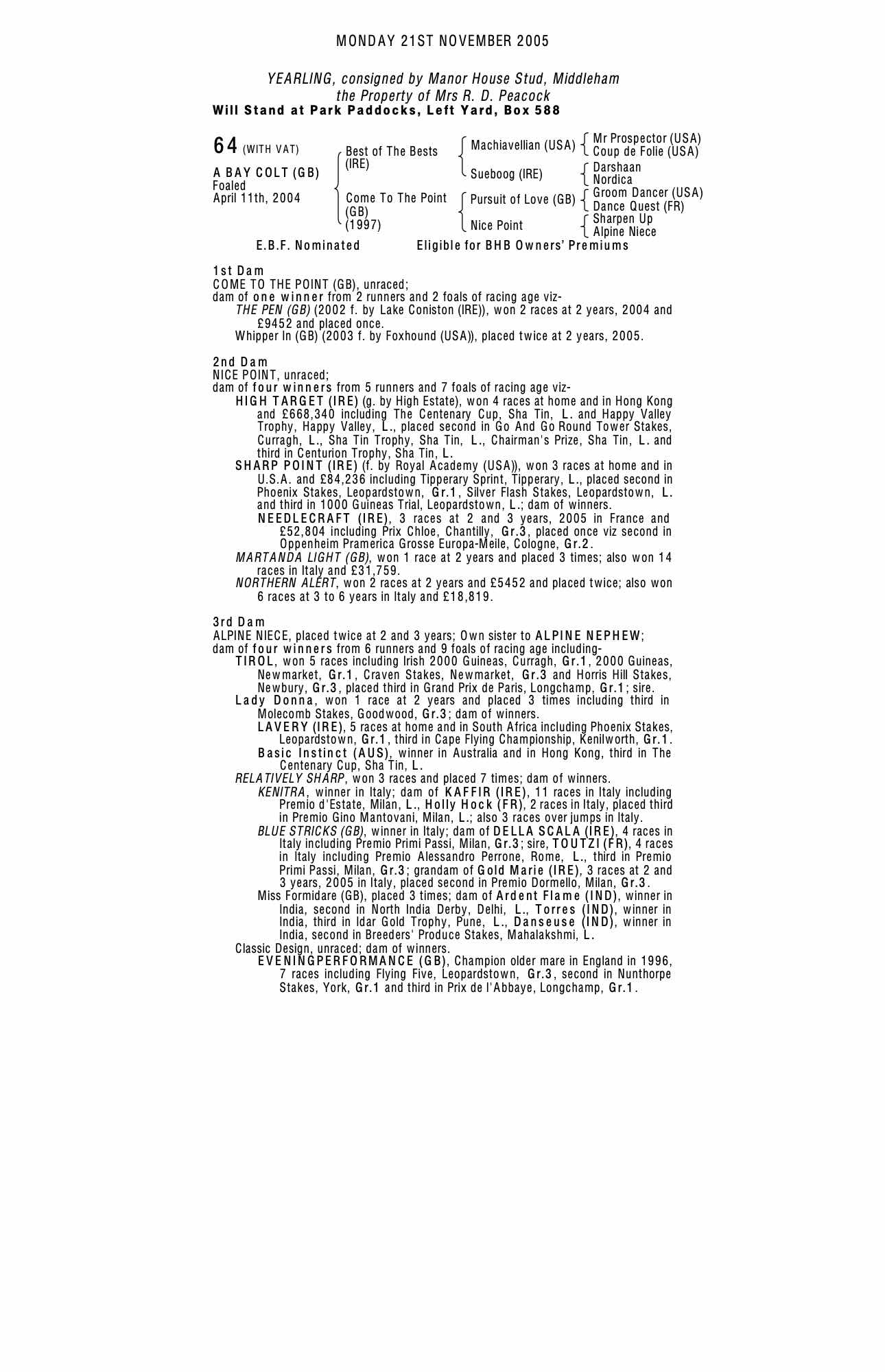 Consignor: Manor House Stud, Middleham