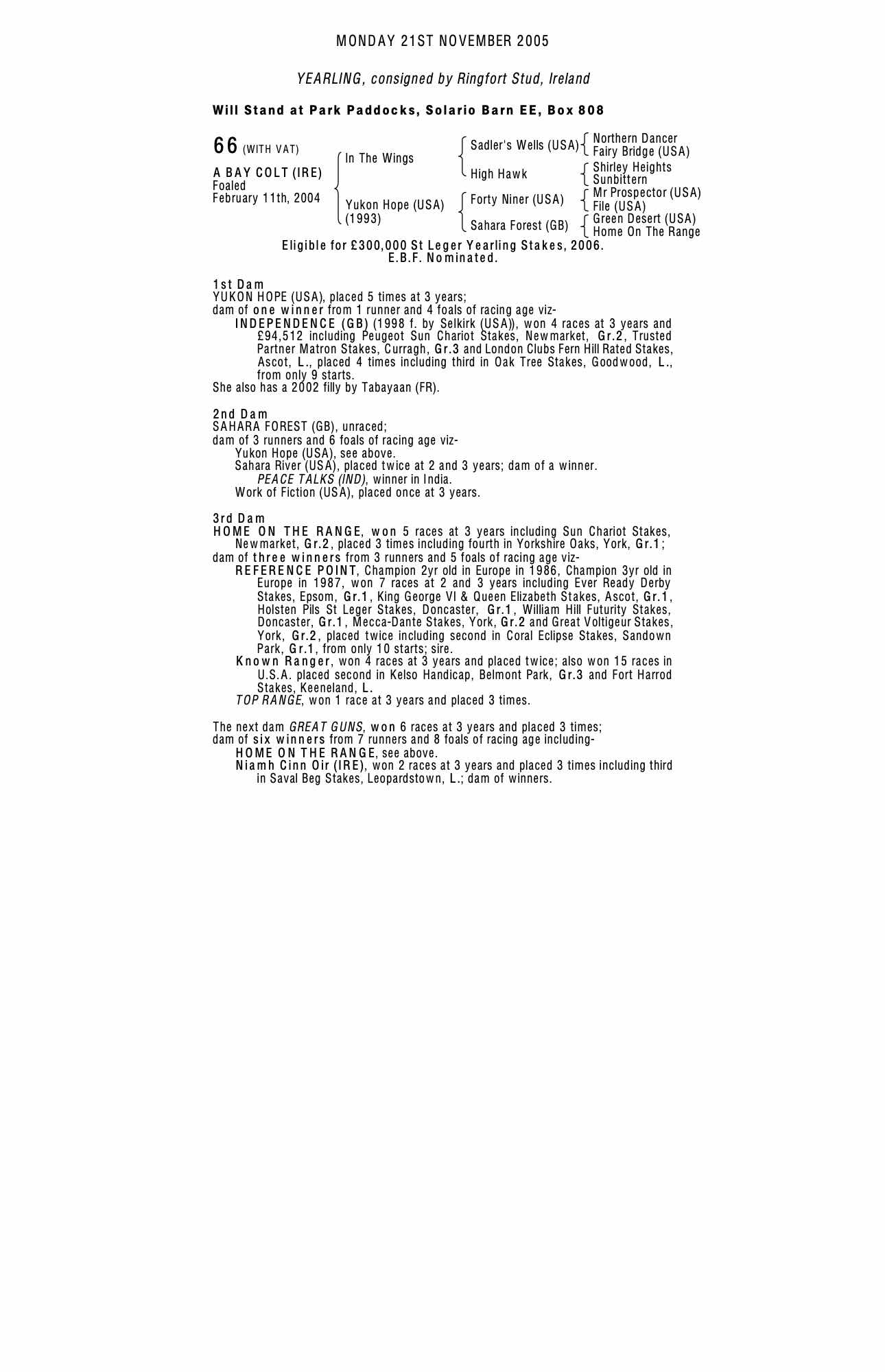 December Foal Sale 2005 lot 1286 F. by Noverre (USA) 2005, Ringfort Stud, Ireland=>Tally-Ho Stud 31,000 gns