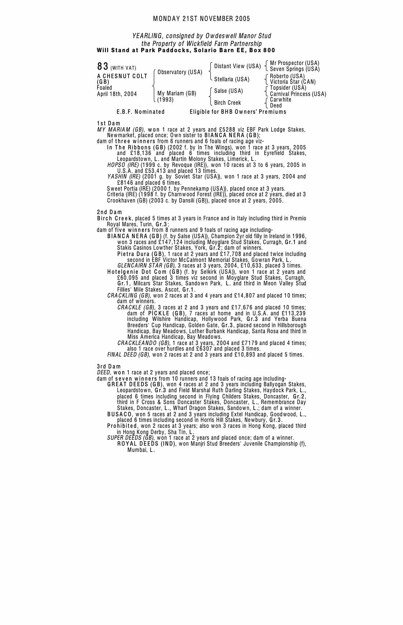 October Yearling Sale 1999 lot 516 F. by Charnwood Forest (IRE) , Owdeswell Manor Stud=>Emerald Bloodstock 10,500 gns