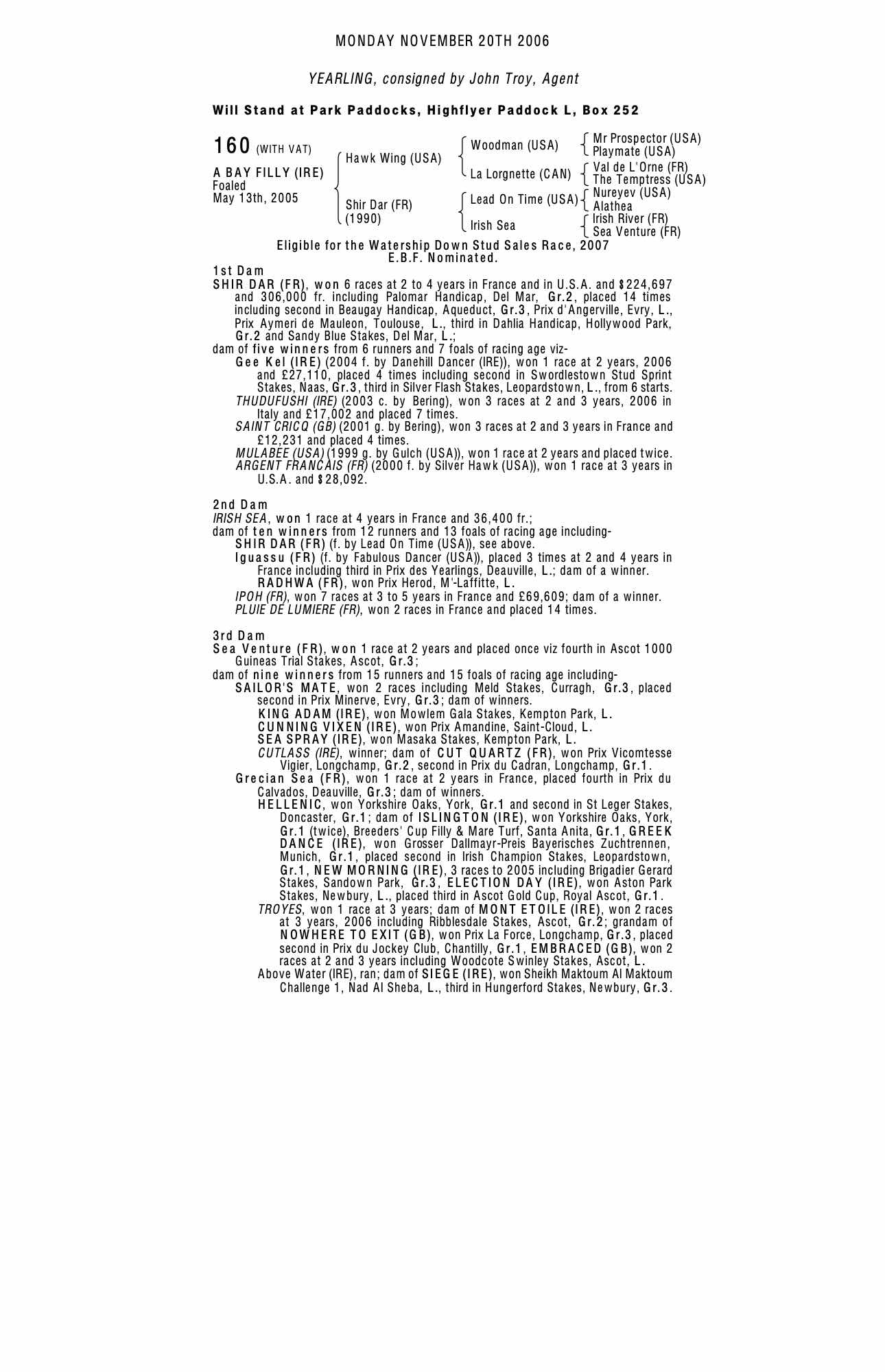 December Mare Sale 2011 lot 1923 Golden Flyer (FR) (M. by Machiavellian (USA)), Plantation Stud=>Lot Not Sold 48,000 gns