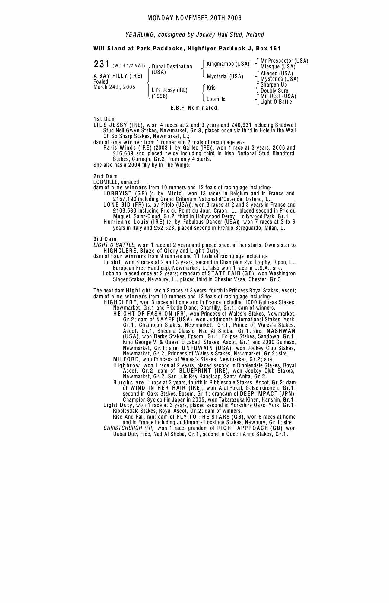 October Yearling Sale, Book 1 2005 lot 364 F. by In The Wings 2004, Jockey Hall Stud, Ireland=>Walter Swinburn Racing 65,000 gns