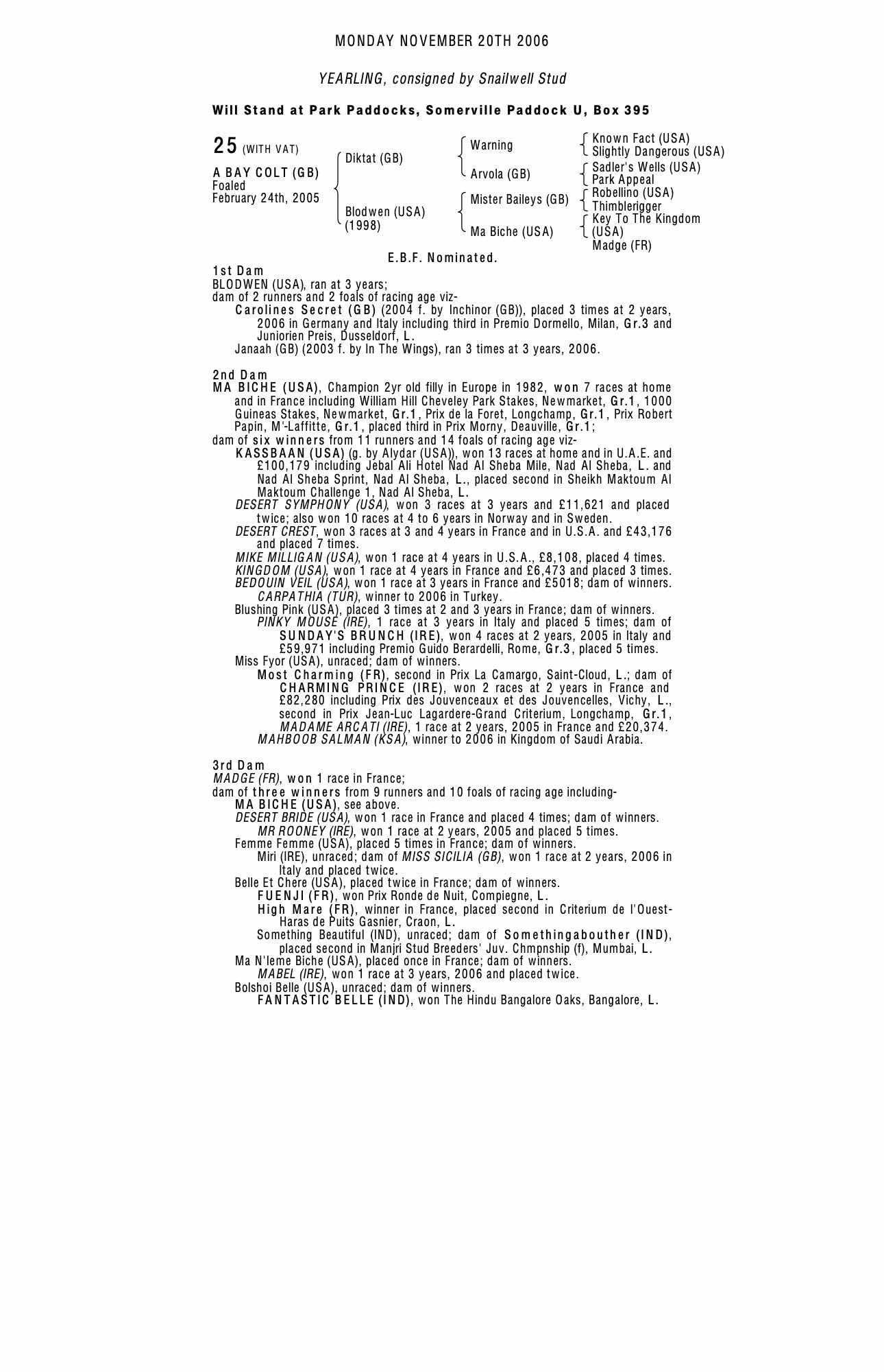 December Foal Sale 2005 lot 1507, Snailwell Stud=>Vendor 10,000 gns