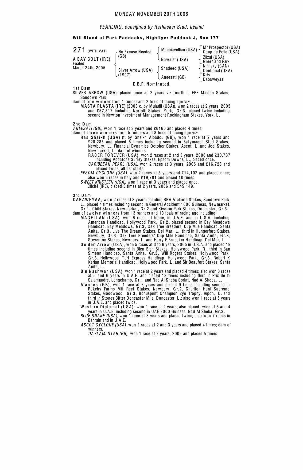 December Foal Sale 2006 lot 937 F. by Kheleyf (USA) 2006, Rathasker Stud, Ireland=>Hawthorn Villa Stud 58,000 gns