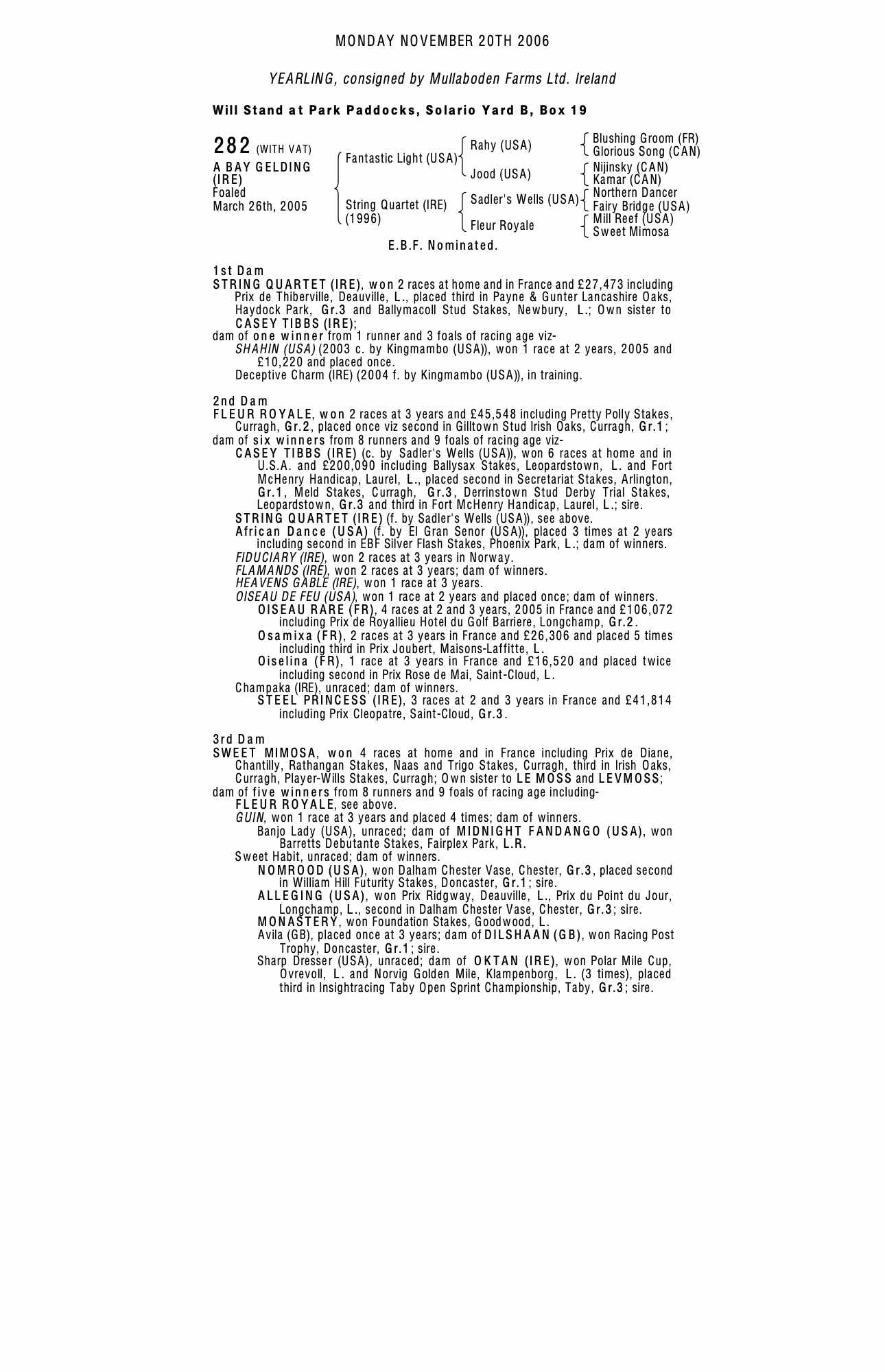 Consignor: Mullaboden Farms Ltd. Ireland