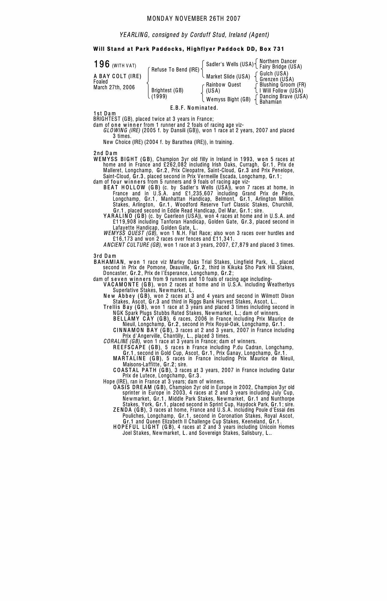October Yearling Sale, Book 2 2006 lot 988 F. by Dansili (GB) 2005, Corduff Stud, Ireland (Agent)=>Margaret O'Toole 160,000 gns