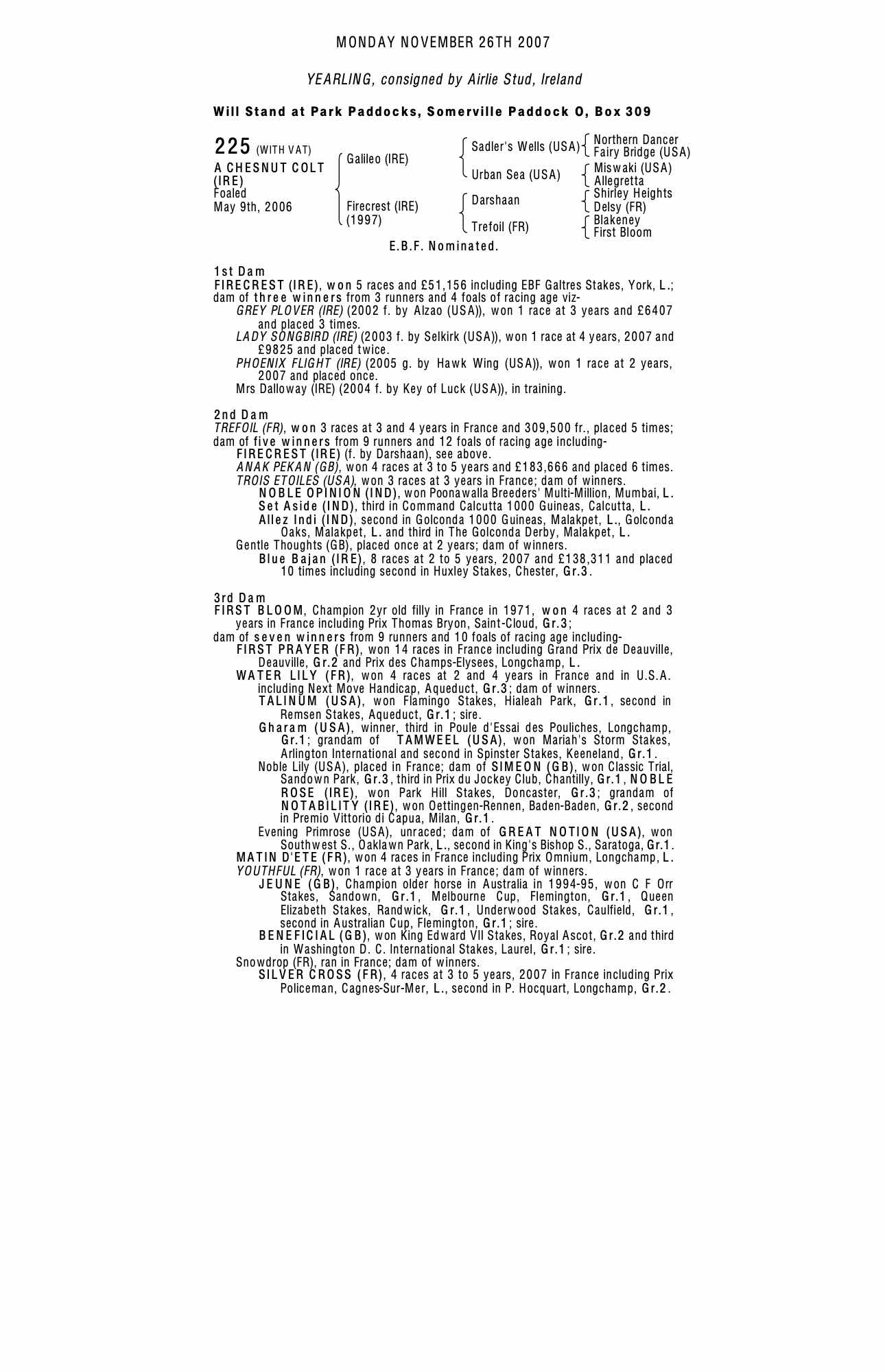 Autumn Horses in Training Sale 2007 lot 319 Lady Songbird (IRE) (F. by Selkirk (USA)), Walter Swinburn Racing Stables=>Charlie Swan 23,000 gns