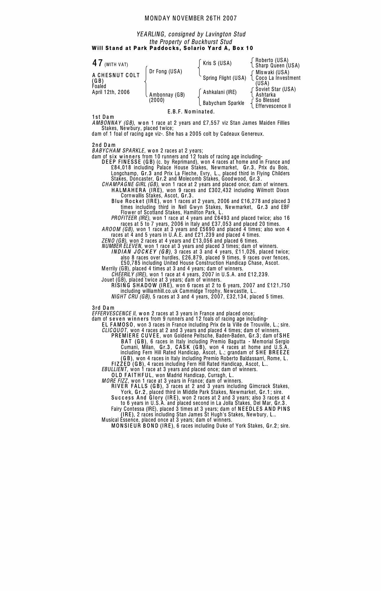 October Yearling Sale, Book 2 2006 lot 947 C. by Cadeaux Genereux 2005, Whitsbury Manor Stud=>Emerald Bloodstock 18,000 gns