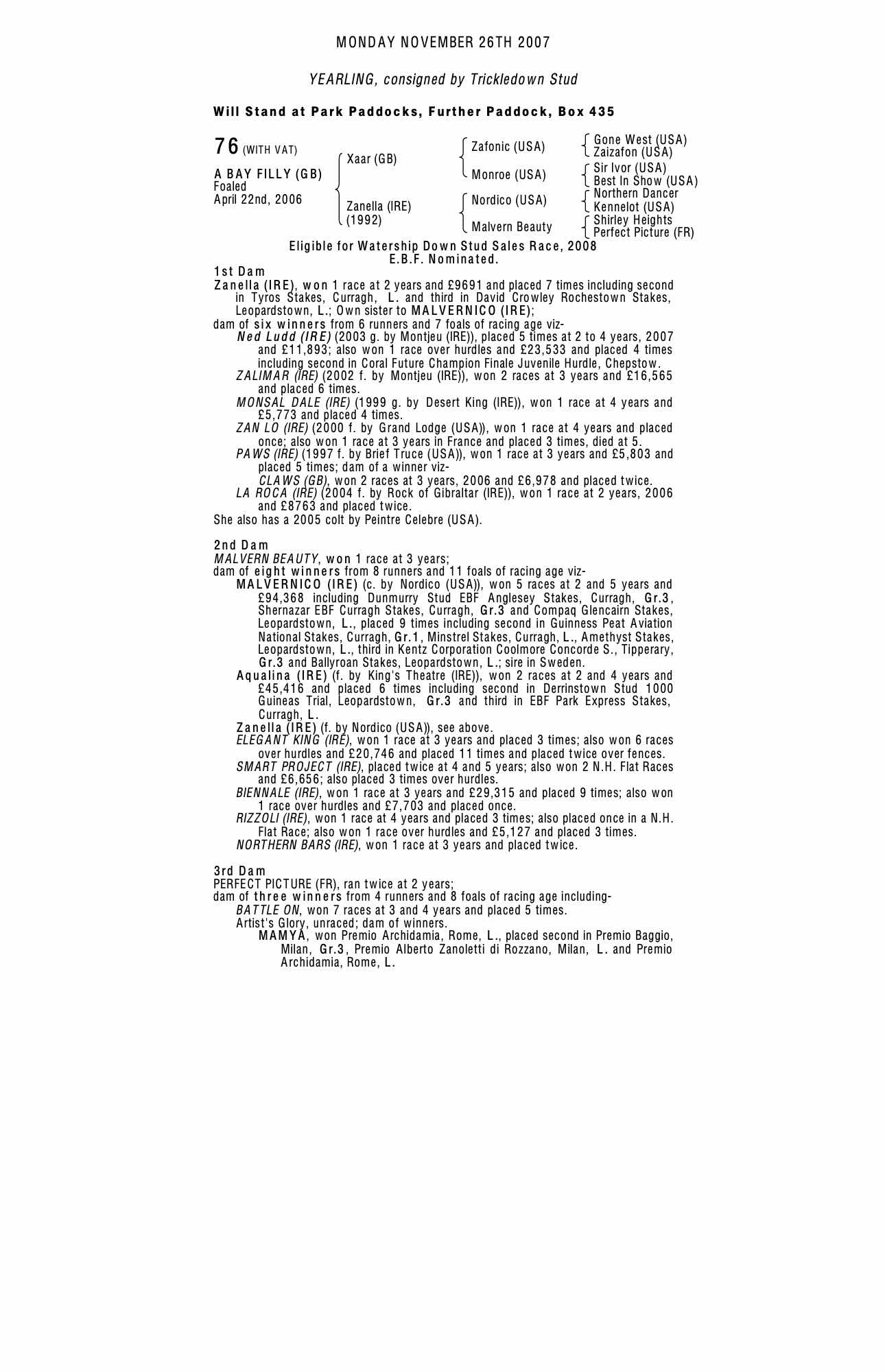 December Mare Sale 2008 lot 1692 Zalimar (IRE) (M. by Montjeu (IRE)), Rushbrooke Stud=>BBA Germany 8,000 gns