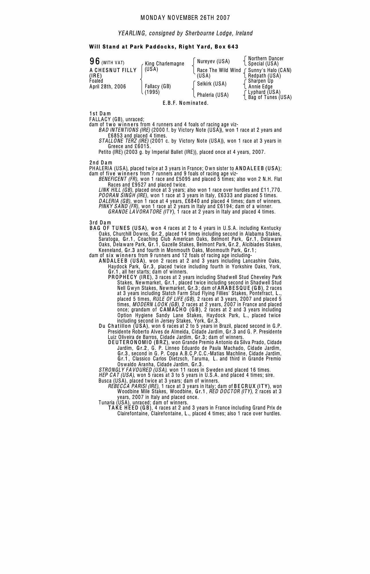October Yearling Sale 2001 lot 47 F. by Victory Note (USA) , Sherbourne Lodge, Ireland=>Lot Not Sold 6,800 gns