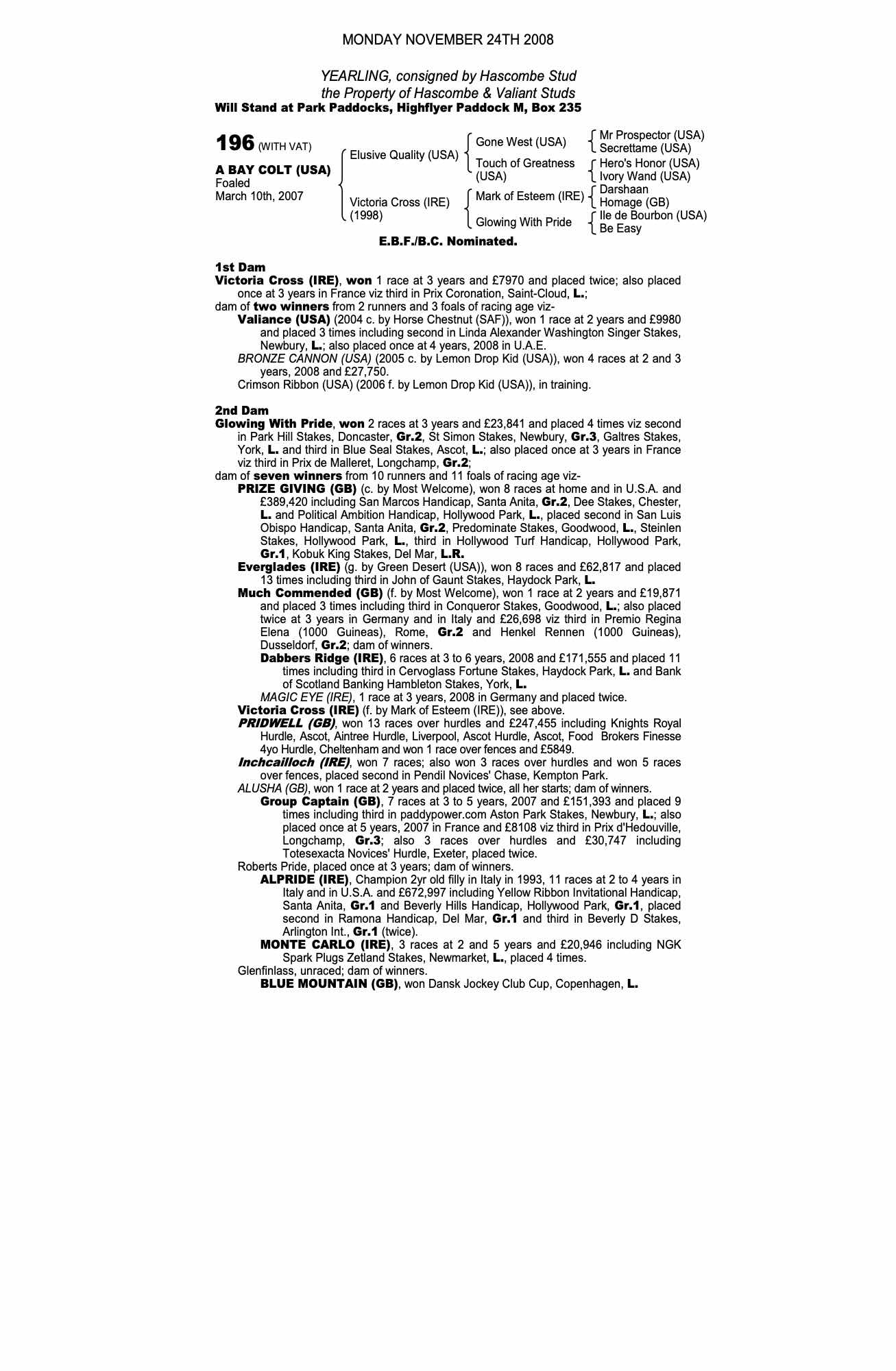 Consignor: Hascombe Stud