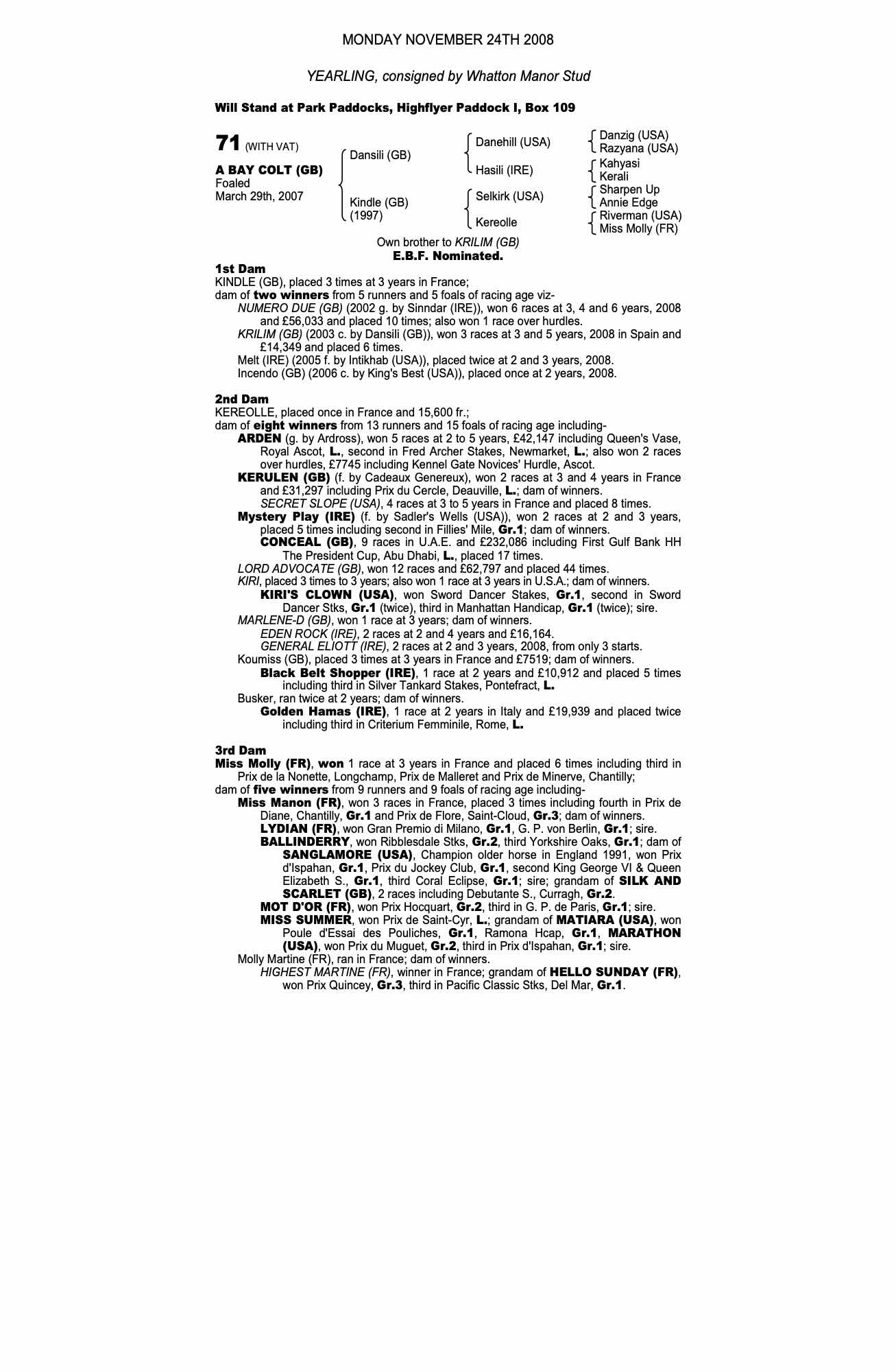 Consignor: Whatton Manor Stud