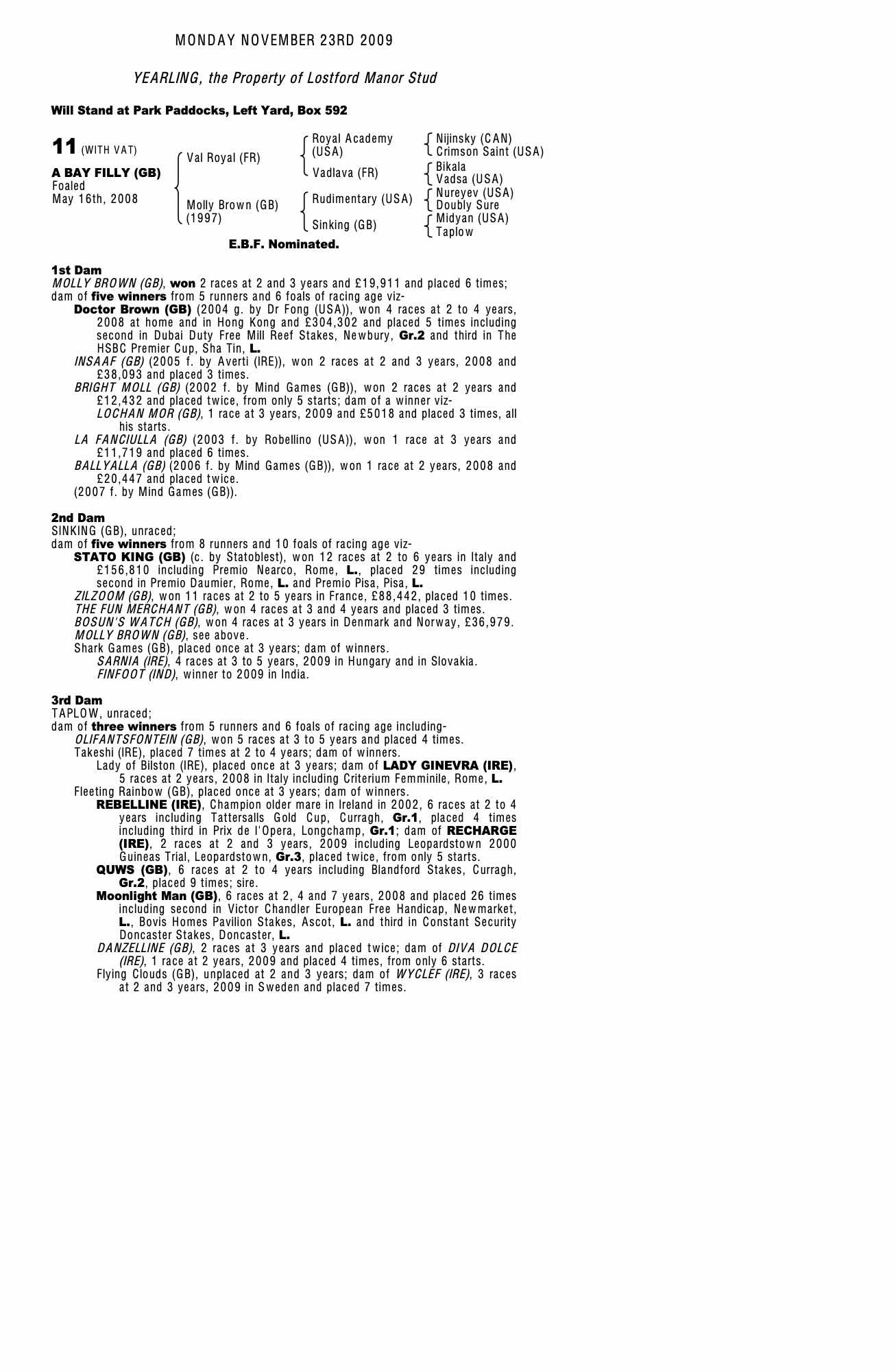 July Sale 2011 lot 40 La Fanciulla (GB) (M. by Robellino (USA)), Trickledown Stud=>Lot Not Sold
